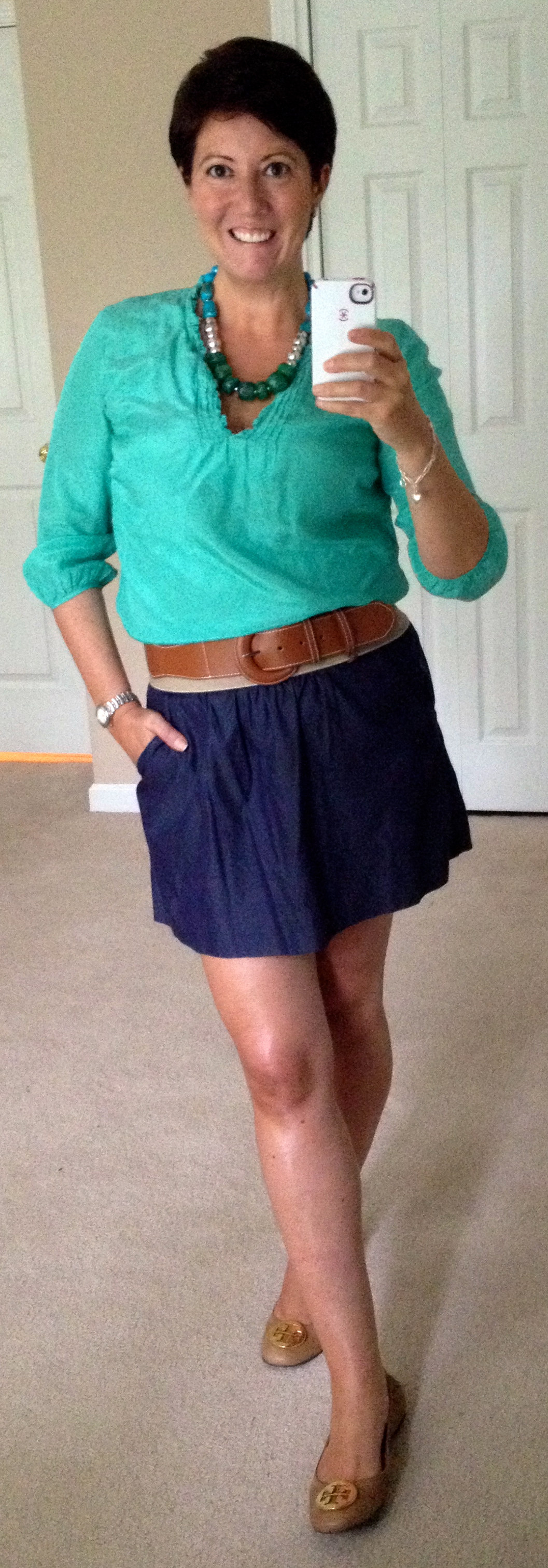 I opted to wear something bright and cheery today to start the penultimate week of the school year. We all have so many events and activities this week I am praying that coffee and bright colors will keep my mood buoyant. I’m wearing my Boden silk whisper top from 2011, a J.Crew skirt from a couple of springs ago, my Tory Burch sand Revas and the necklace and belt are both Target who always have great cheap and cheerful accessories.