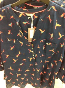 I am loving all things butterfly and bird print currently so this shirt caught my eye, though it’s cotton and could require ironing, not something I like to spend my time doing.