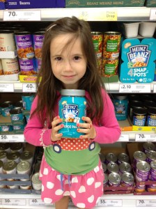 My sister was laughing at the following photo – apparently I’m not supposed to take photos in stores as they suspect it may be competitive intelligence but I couldn’t resist this one for MM – the baked bean lover in the house. Heinz have a packaging that is completely new to me and I LOVE the idea as I am always looking for tupperwares for half opened tins of beans. I’m sure all you UK residents are completely up to date with the fridge packaging innovation but I’m blown away! MM thinks it’s sacrilege for beans to come from anything but a tin and was more intrigued by the vegetarian sausage and beans behind Poppy!