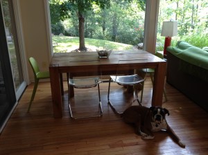 We also thankfully got rid of the dogs’ chaise. Yes the dogs had their own chair but as they would now rather lie on any other piece of furniture than their own I decided that it was time for it to go. It smelt and looked rather horrid after years of use. So a large area has opened up in the kitchen where I plan to create a ‘coffee nook’ that can be transformed into an area for entertaining given that all our parties end up in the kitchen…though our house has very few walls it can be argued where the kitchen actually begins and ends…I’m going to get two Tullsta arm chairs in black leather from IKEA which are cheap enough to get trashed by the children, but look neat and sleek enough to be pleasing on the eye too.