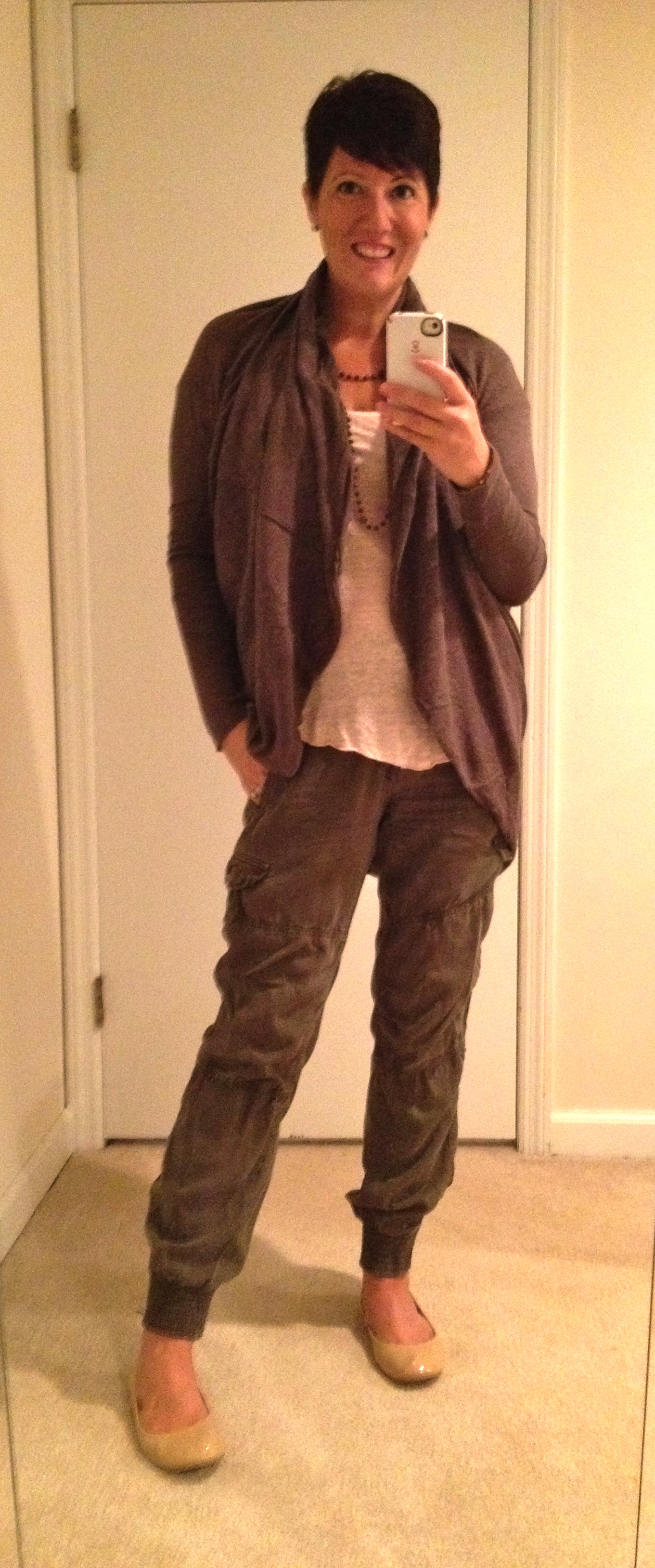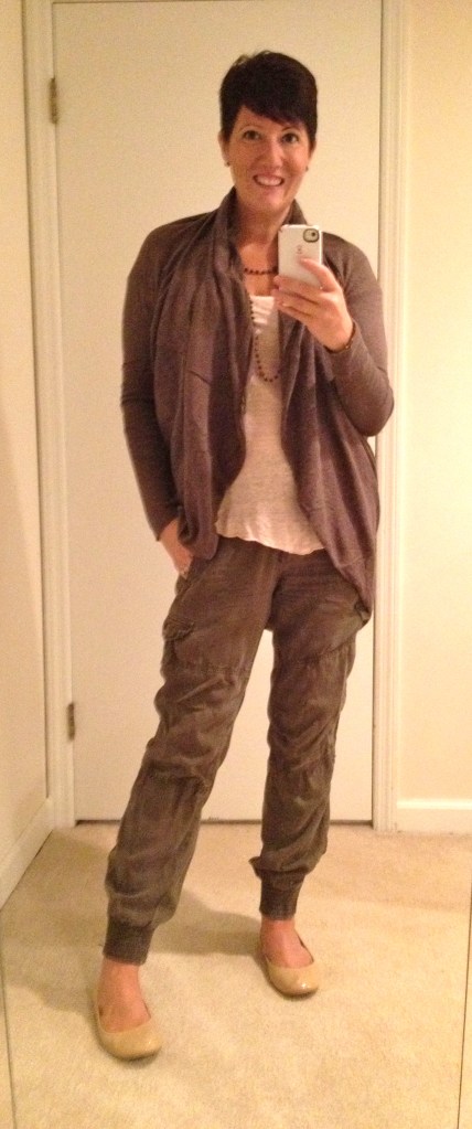 Today I’m wearing my fab Zara cargo pants, pink Zara linen t-shirt from the sale, AllSaints Itat shrug and Tory Burch pink Eddie flats.  Feeling very comfy on a drizzly Atlanta day.