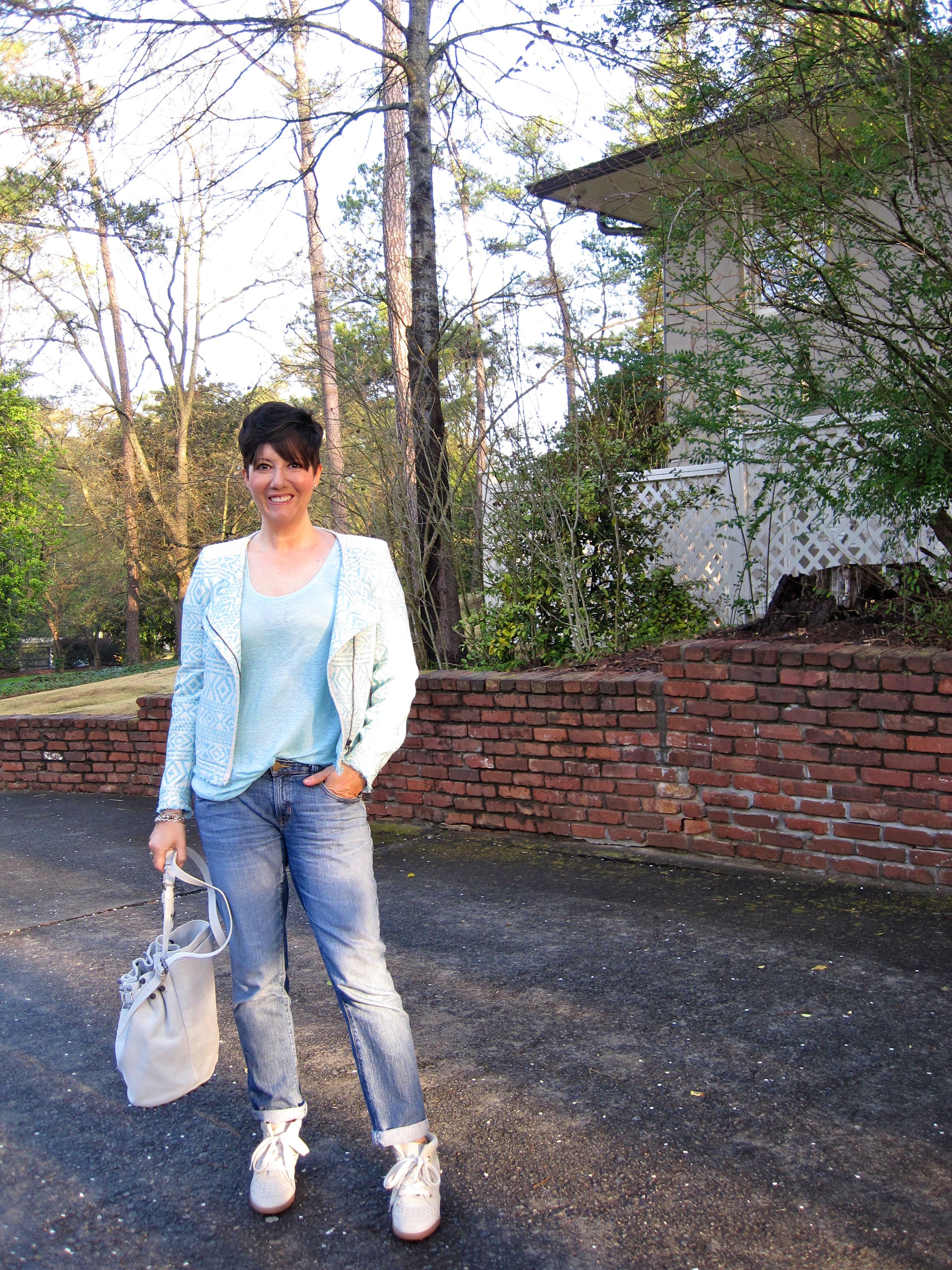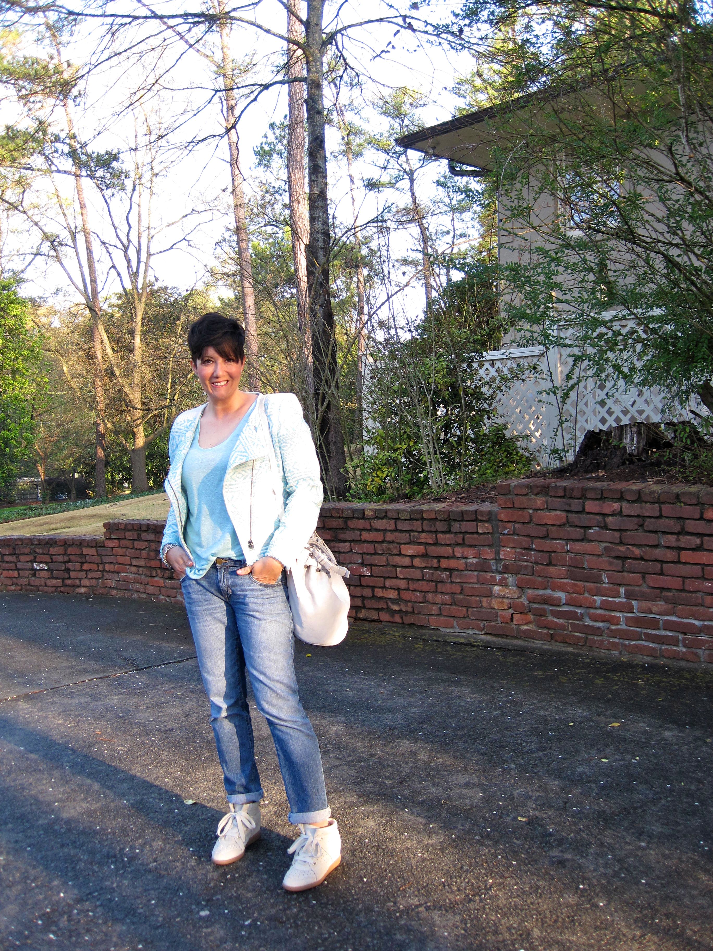I saw the email title and didn’t even open it – I’m afraid that one passed me over this time. The jacket looks great and the whole colour scheme is soft and springlike. Nice accessories! They are not lost on me!