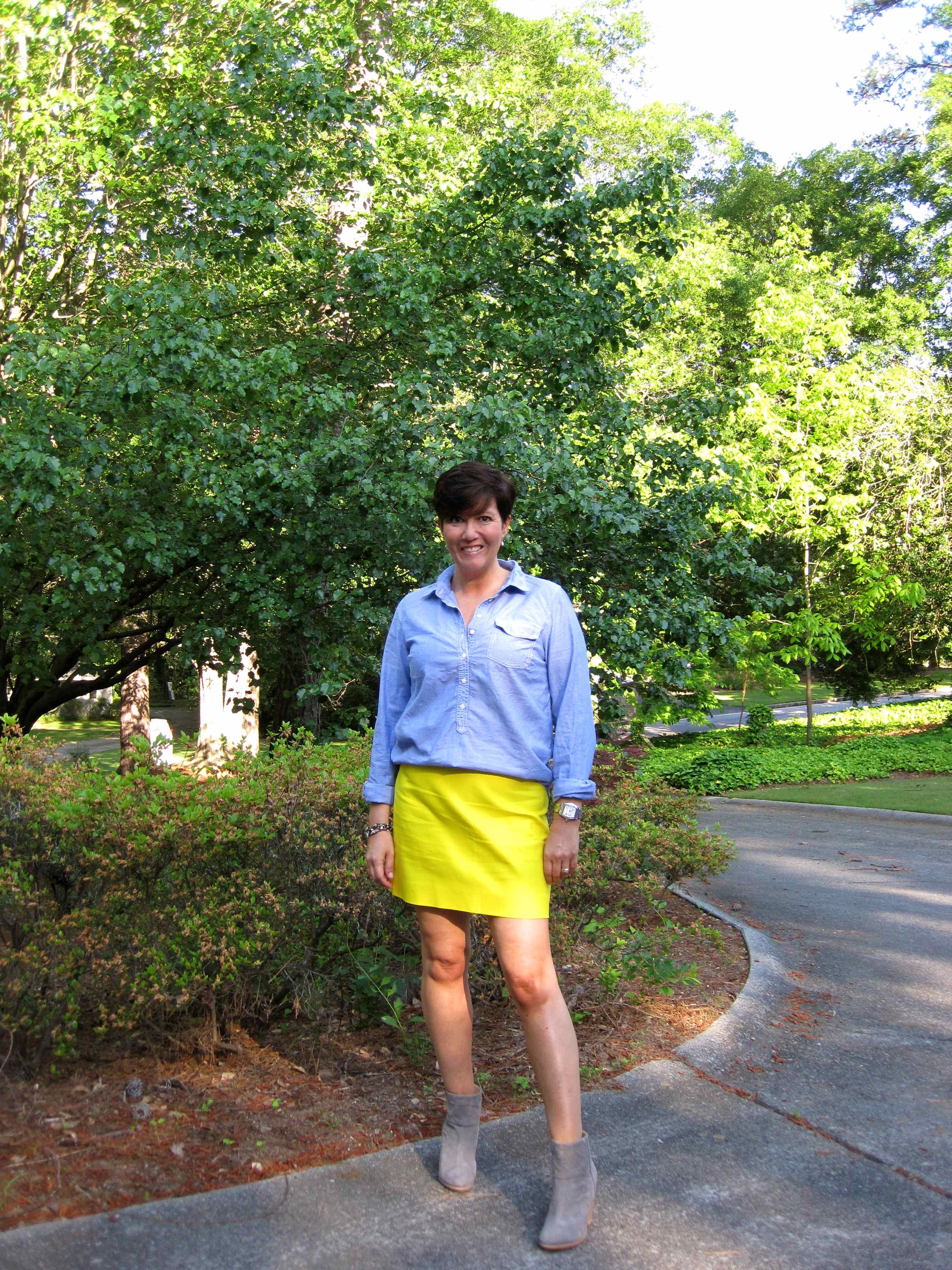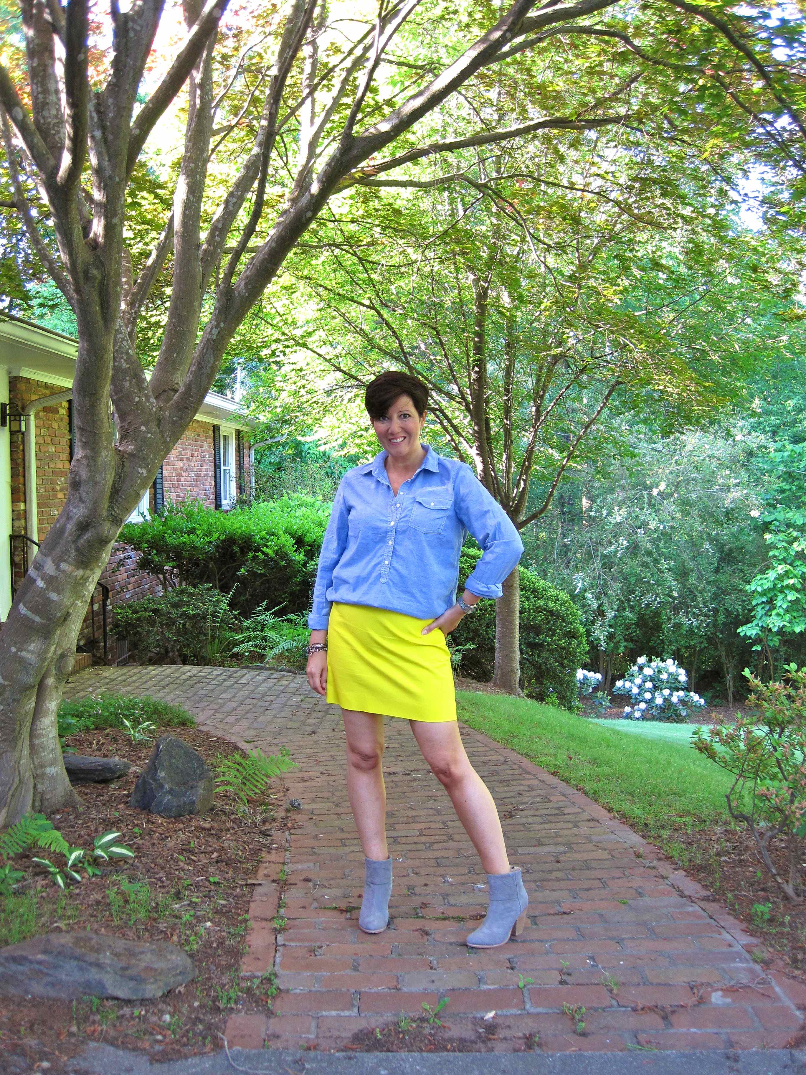 So am I wearing a skirt that is too short for my age? What do you think? I didn’t consider it too short till just now. I bought it based on the Michael Kors skirt I’d seen and I love the color. I think it is the only yellow item I have in my closet though – it’s definitely not normally a color I gravitate towards.