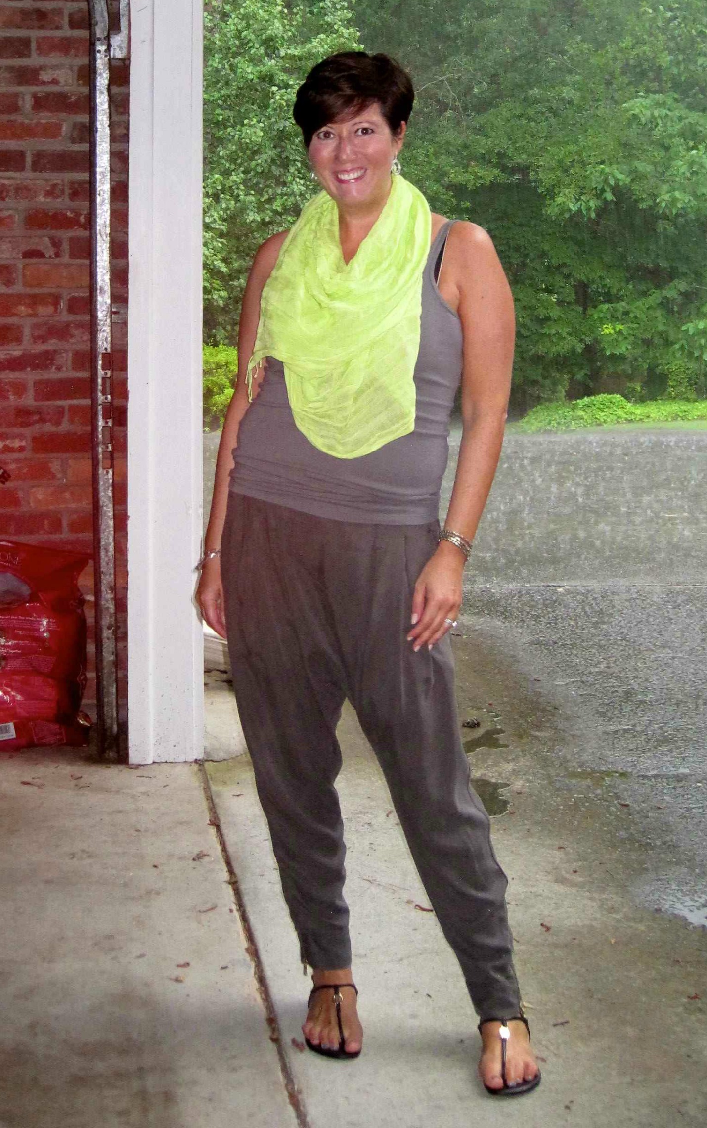 Harems – Zara (old) // Tank – Target (old) // Scarf – J.Crew linen scarf (old) // Sandals – Tory Burch Emmy (old – love this year’s silver though!)
