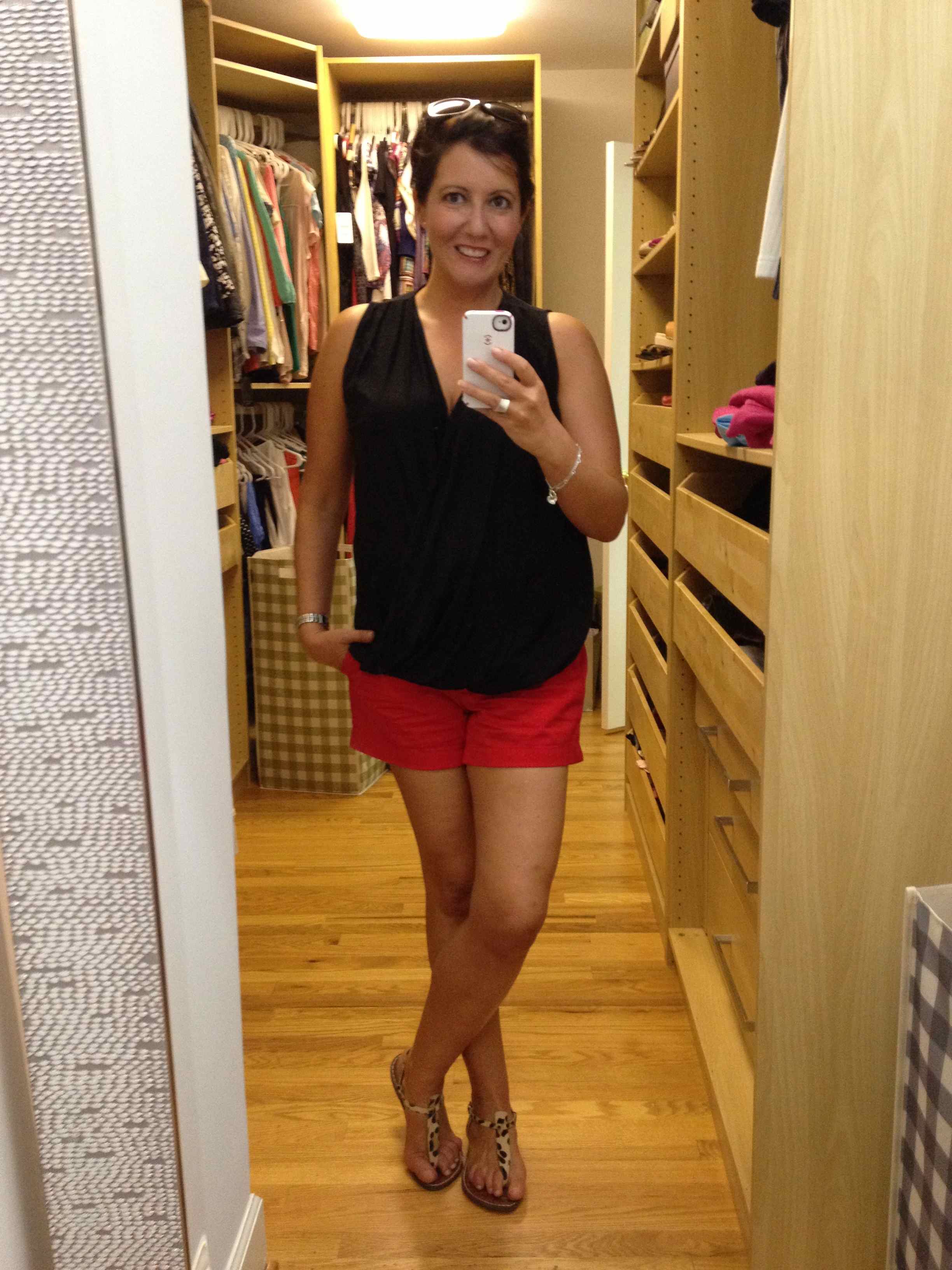 Saturday outfit for a BBQ lunch – J.Crew shorts, Zara top (old) and Sam Edelman Gigis.