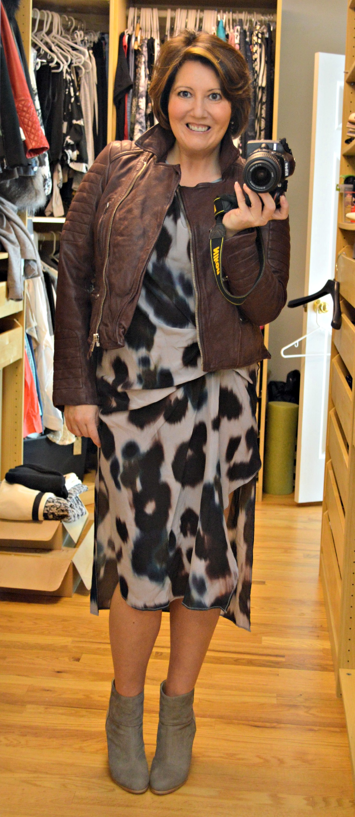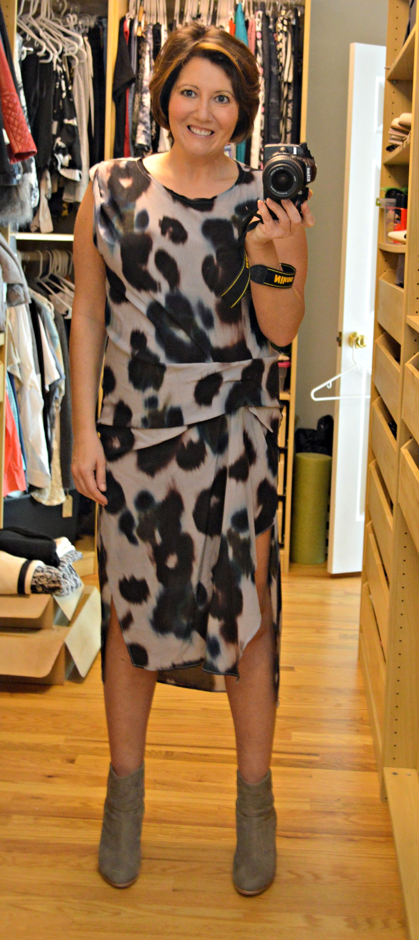 Now the Diego Tee dress in natural marl.  This comes up short – maybe too short for some – but I love it with these grey Newbury boots for the spring.  A fun way to get the legs out.  As a lover of suede I love the lightweight suede detailing.  It wipes clean easily with a dry cloth so don’t be scared of it.  The pocket is a single pocket that goes all the way through – make sense?  Reduced from $260 to $104 and I am wearing a Medium.