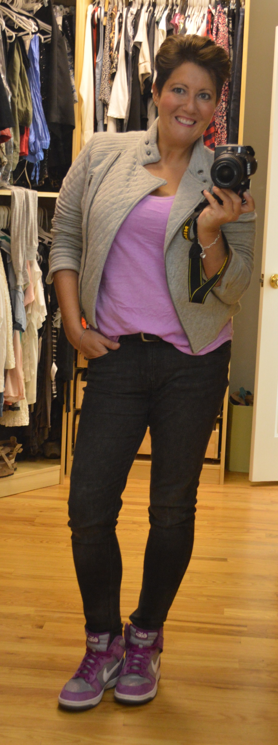 Sneakers – Nike hi-tops (last seen here in one of my first ever posts) // Jeans – Zara (old) // Tank – Target (old) // Jacket – Next (old)