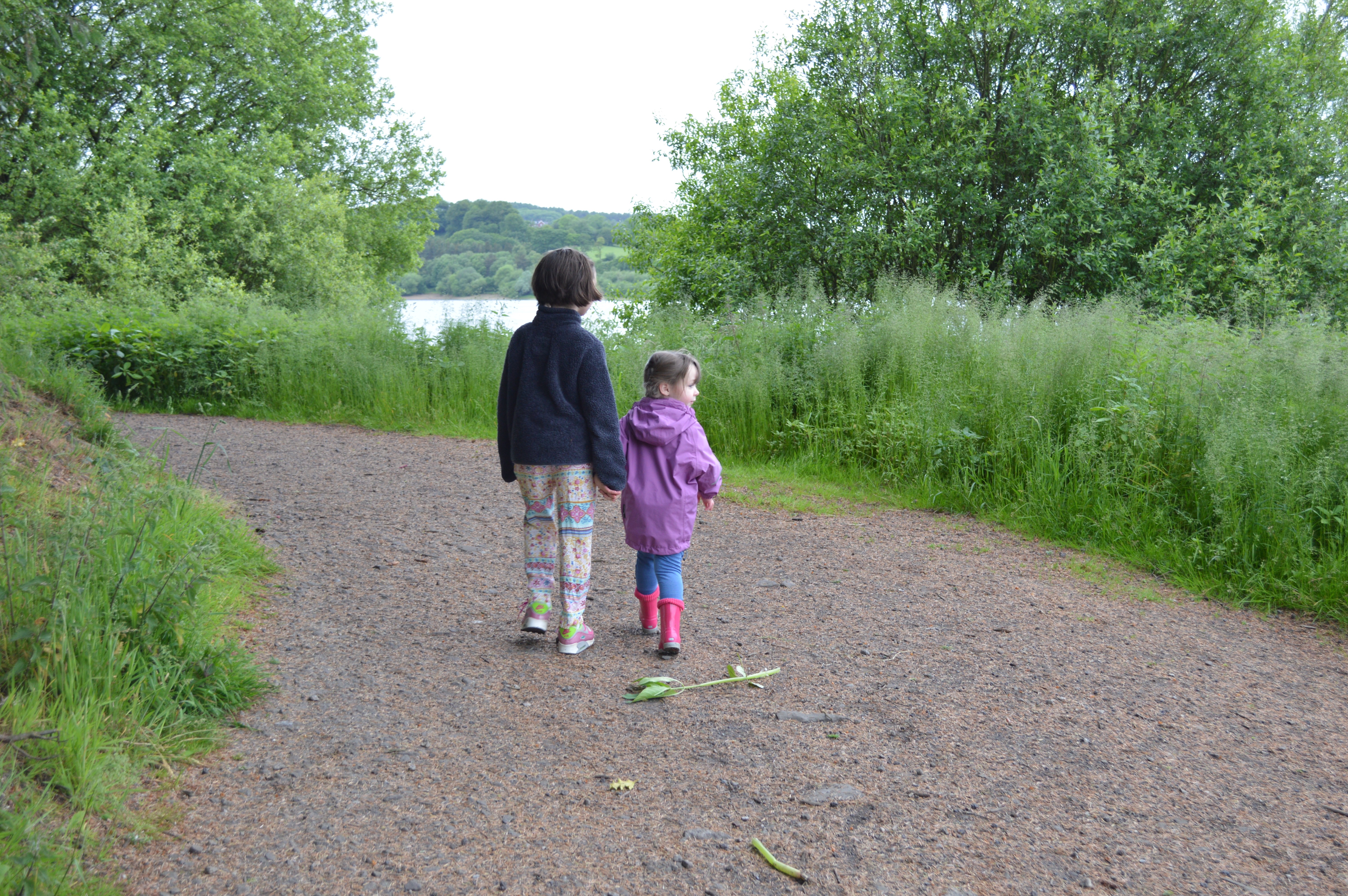 DSC_0572 DSC_0591 DSC_0597 DSC_0616Today we walked round a local reservoir – The Wayoh – with my brother and his family. His daughter, Alice, is a hoot – non stop chatter and she smothers us in kisses and hugs – she’s my kinda girl! Of course the 3 of us Americans were completely unprepared – no waterproofs and no walking shoes – but we survived!