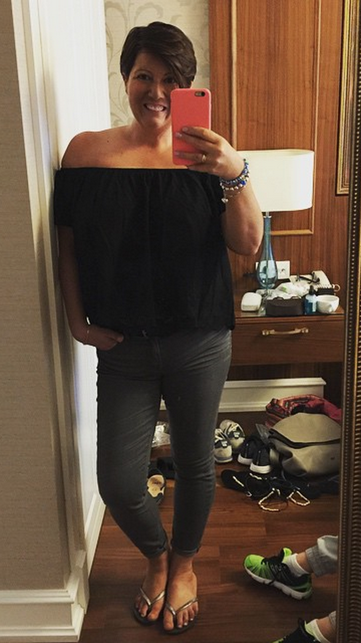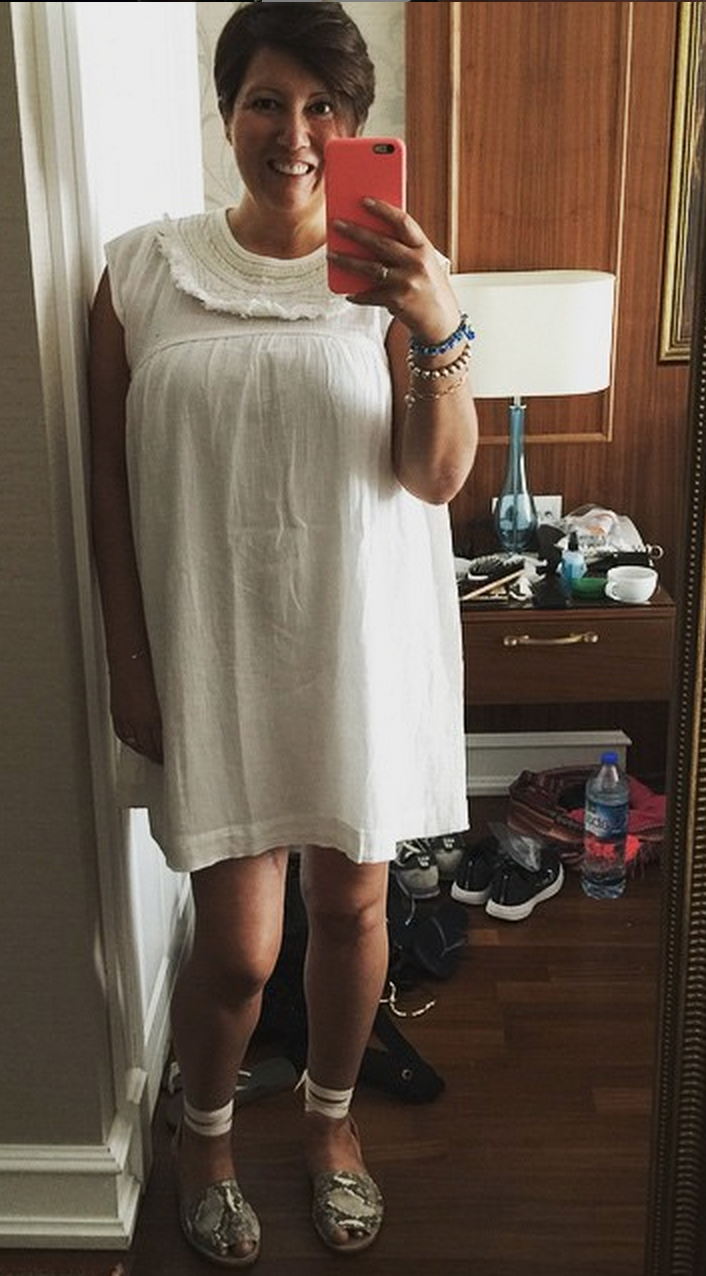 Poppy – Dress – M&S // Shoes – Target // Espadrilles – Soludos // Shorts – Madewell // Top – H&M (similar here) // Earrings – Amazon