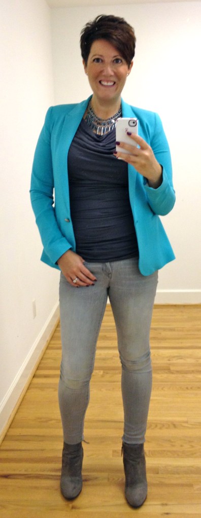 Before heading out I put on my Boden leopard print scarf from last year and Boden shrunken leather blazer from a couple of years ago. I love this jacket even though most people complained about it being too short.