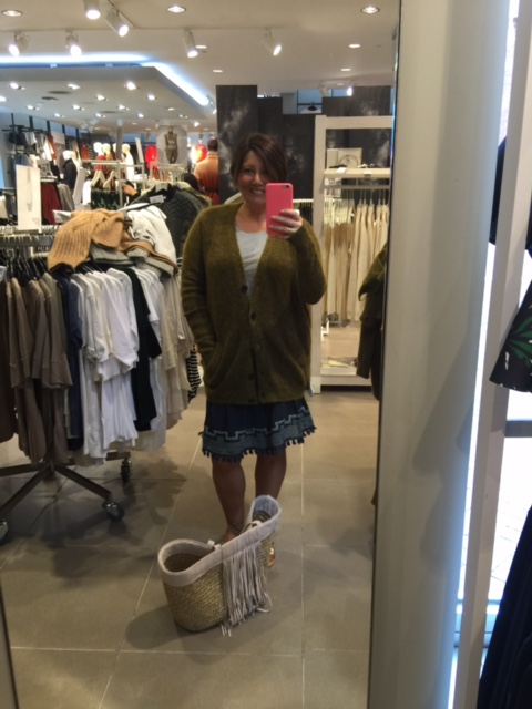 This khaki cardigan made me feel like a young student again so it came home with me too! It’s described as ‘yellow marl’ online but it is definitely green!