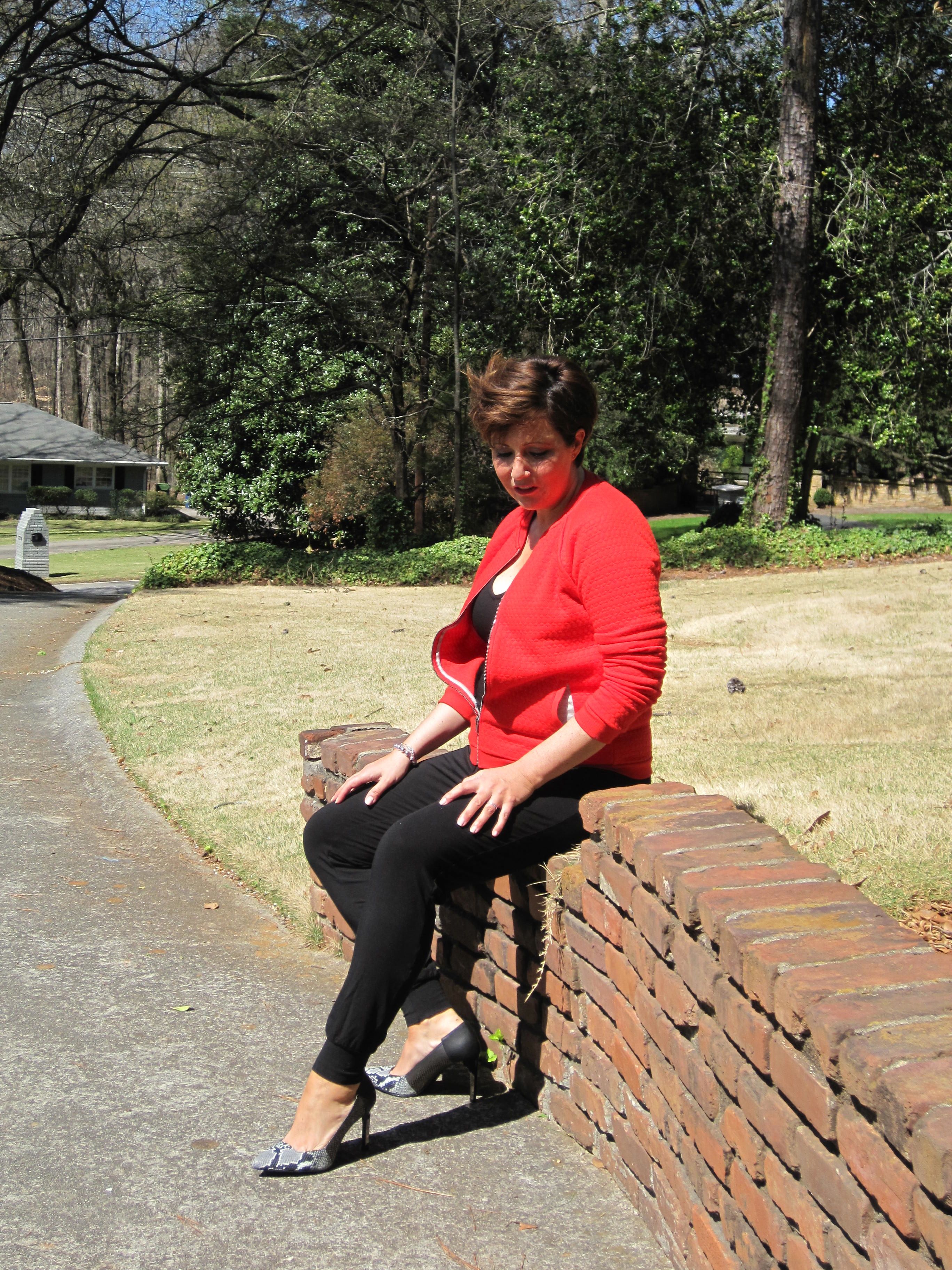 A little lighter and dressier – this lace jacket is a little different, and I love the navy front panels.