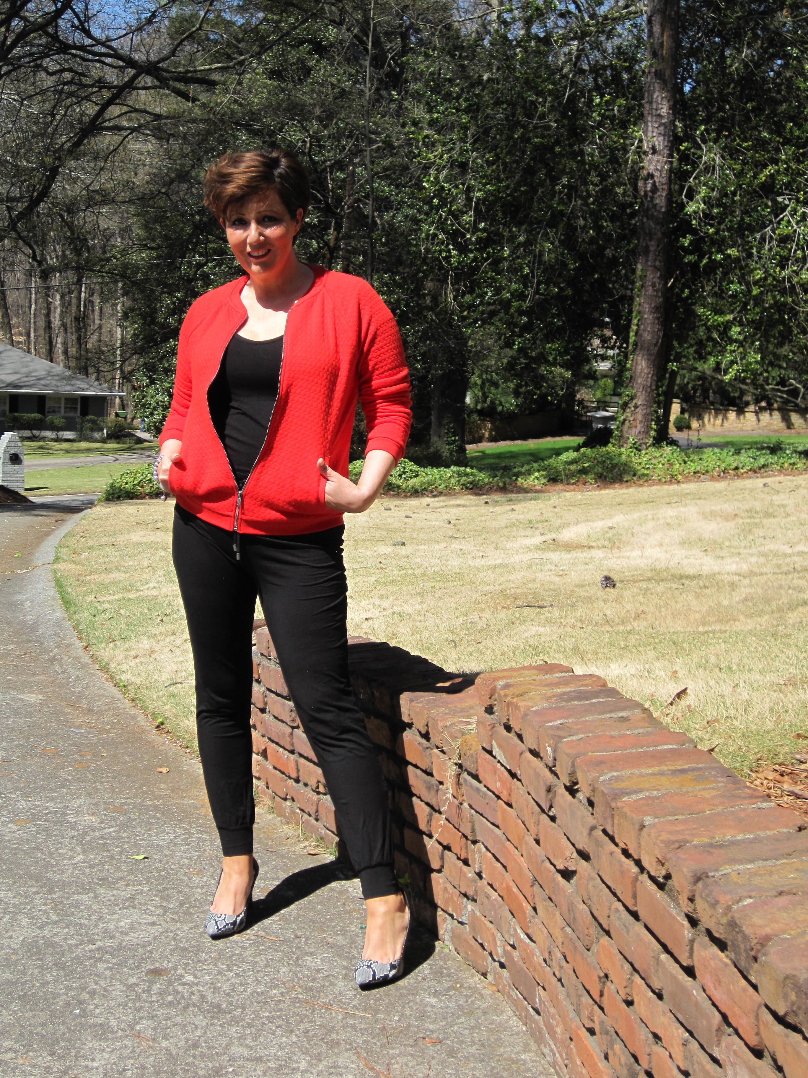 Here I am in my H&M bomber yesterday – at just $59.99 it is great value. Don’t be scared of the red – it works great with blue or black denim. Oh size down too – it fits big. This is a medium.