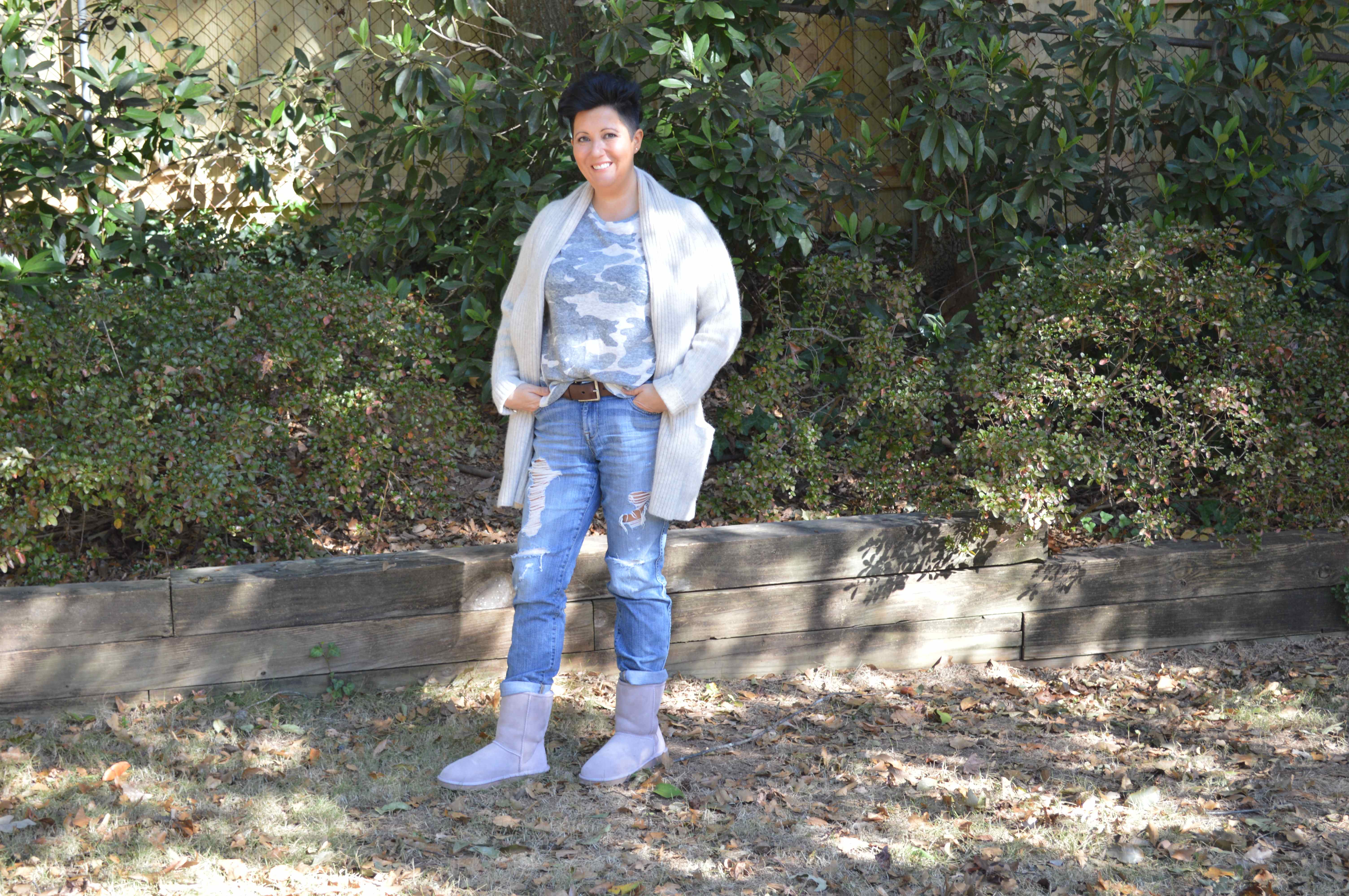 Boots – Uggs // Jeans – J.Crew (25% off with GETWARM) // T-shirt – Mango // Cardigan – AllSaints (old but similar here)