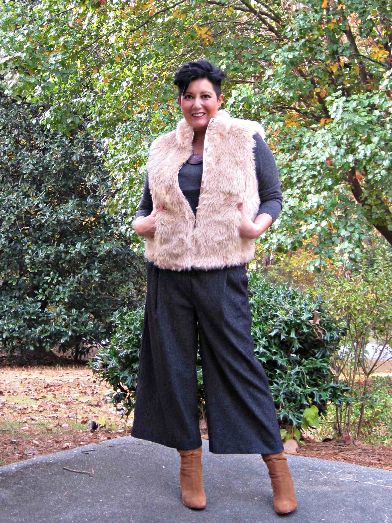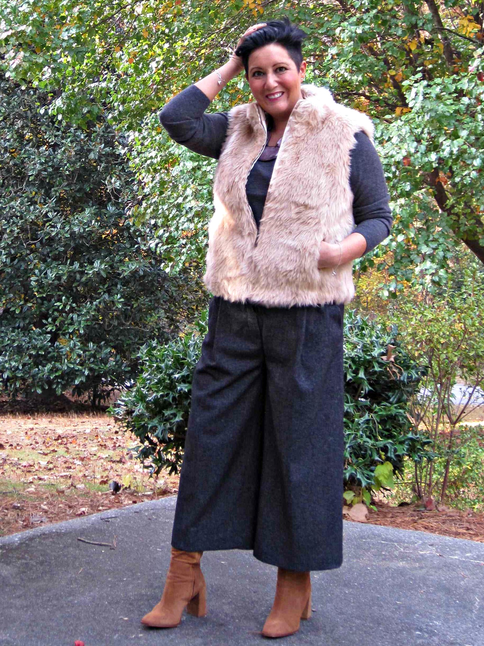 Culottes – Mango // Sweater – Everlane v-neck slouchy cashmere // Gilet – JohnnyB (last year but similar here with 25% off till Thursday midnight!) LOVING the jacket version too here! // Boots – Zara