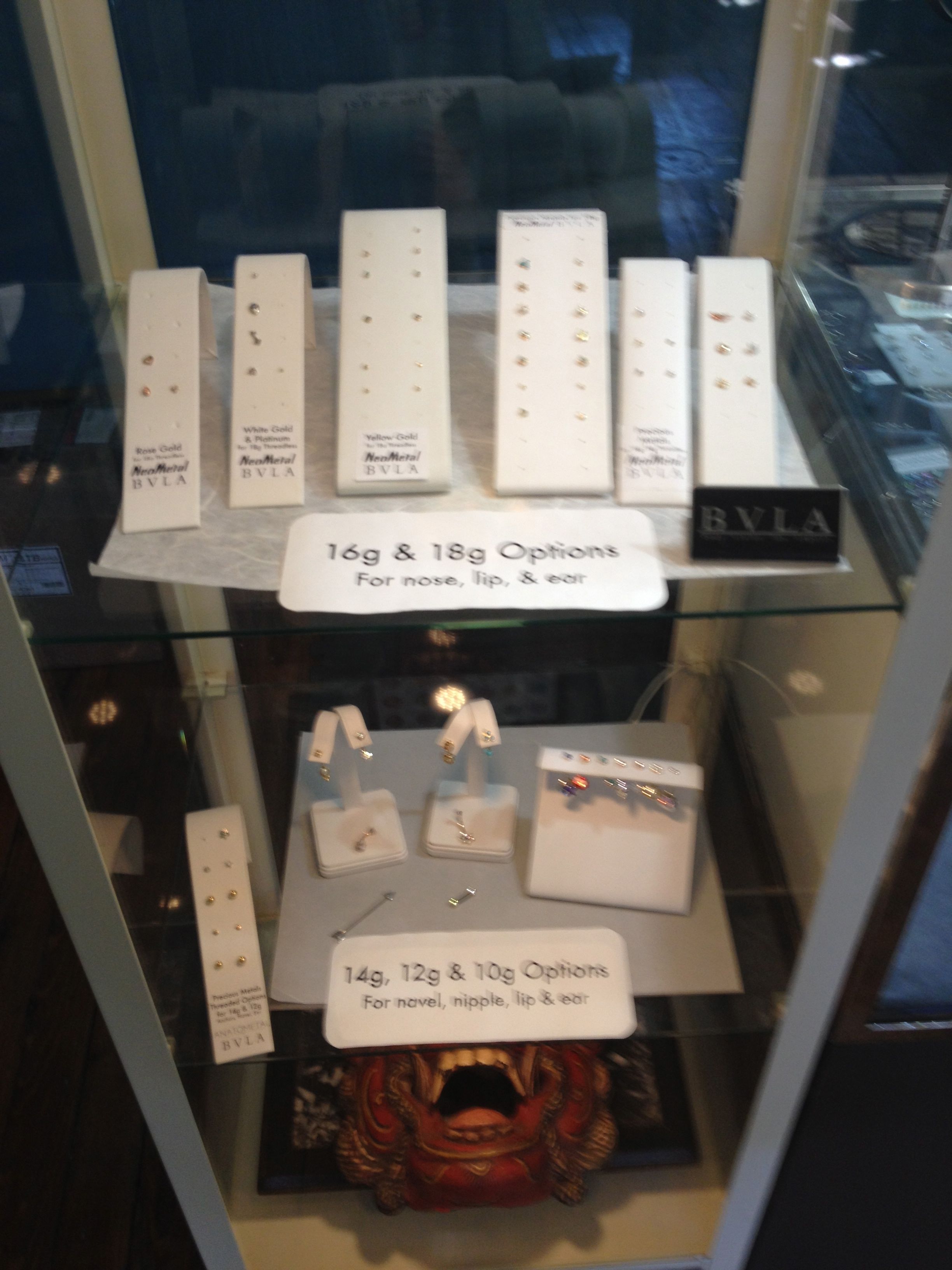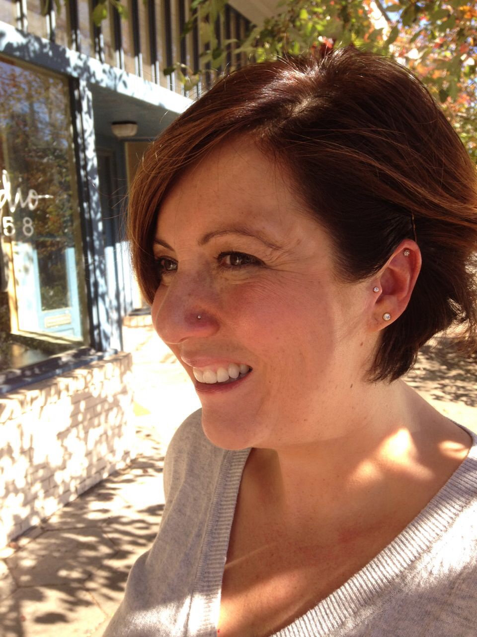 Christina was amazing – she explained everything, and was incredibly professional.  It was not intimidating at all, some pain of course – but far less than I’d prepared myself for.  Piercing Experience don’t use clamps or guns so it’s all completely sterile and as gentle as piercing through a tough piece of cartilage can be!  I was also really impressed with their choice of jewelry – from fine jewelry like I chose, to tribal and glass jewelry – it’s also all surgical implant grade.  I’m thrilled – I can’t wait to scare the PTA:)