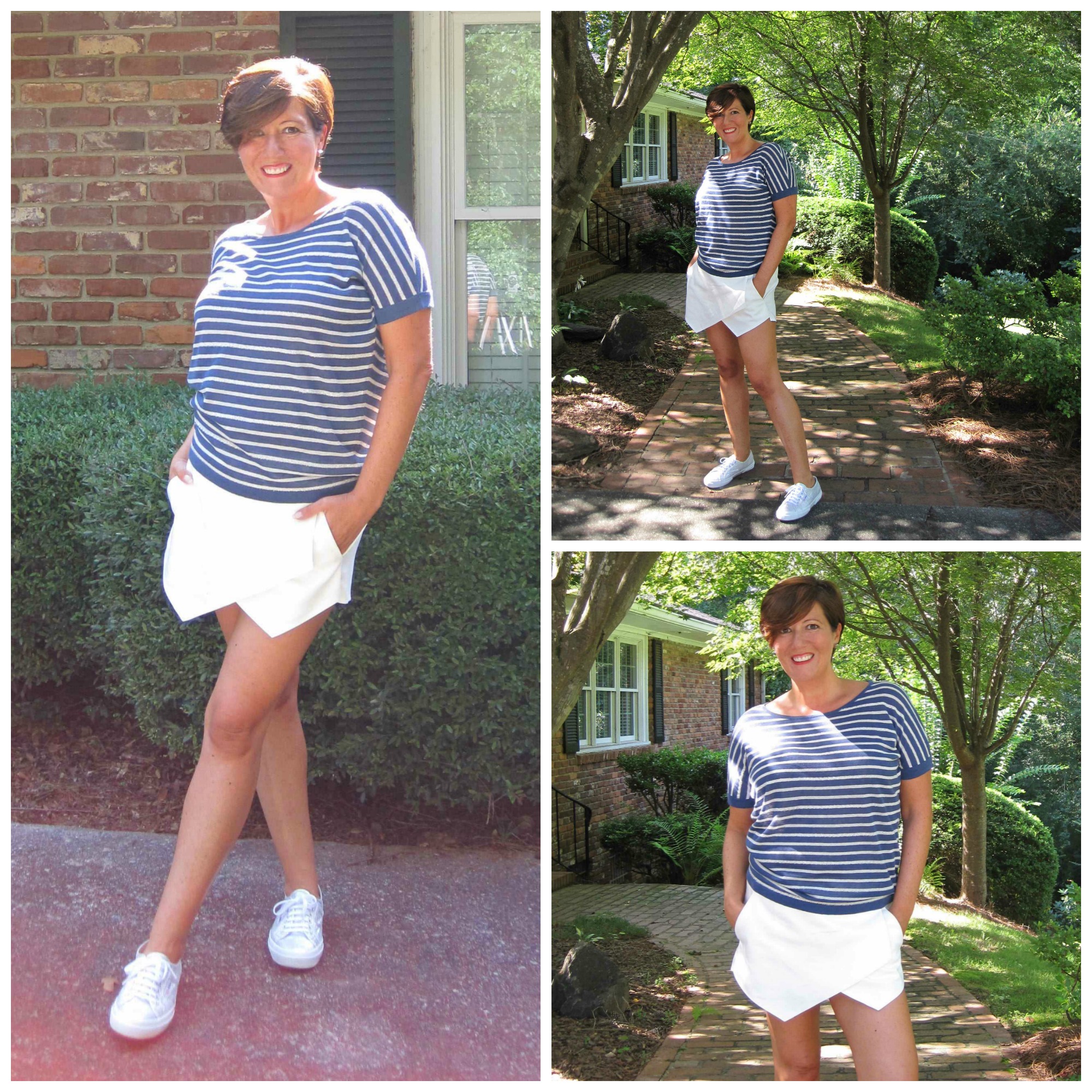 So what better to do than embrace my non-conformity and wear my shortest shorts and sparkliest sneakers:) I do cringe a little every time I put on my Zara skort. Nearly every ‘style’ blogger on the planet has a pair and all of them are 20 years younger than me. But you know what – Patty down the road doesn’t know where they are from, or that all the street style bloggers are wearing them, so I’ll wear them with aplomb in Atlanta and not worry about it. Though, for a split second, it did occur to me that it might be a sub-concious desire to conform – in white they do look a little like a tennis skirt.