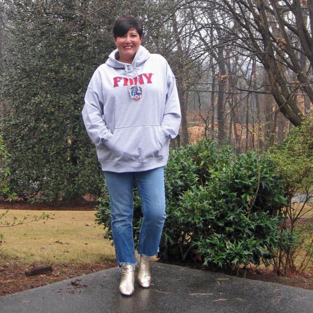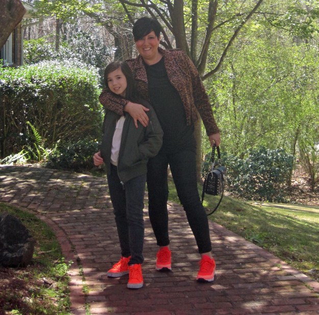 Poppy – trousers (similar here) and top (similar here) – H&M // Shorts – J. Crew Factory // Sweatshirt – H&M // Sneakers – Nike // Bag – J.Crew // Scarf – John Lewis