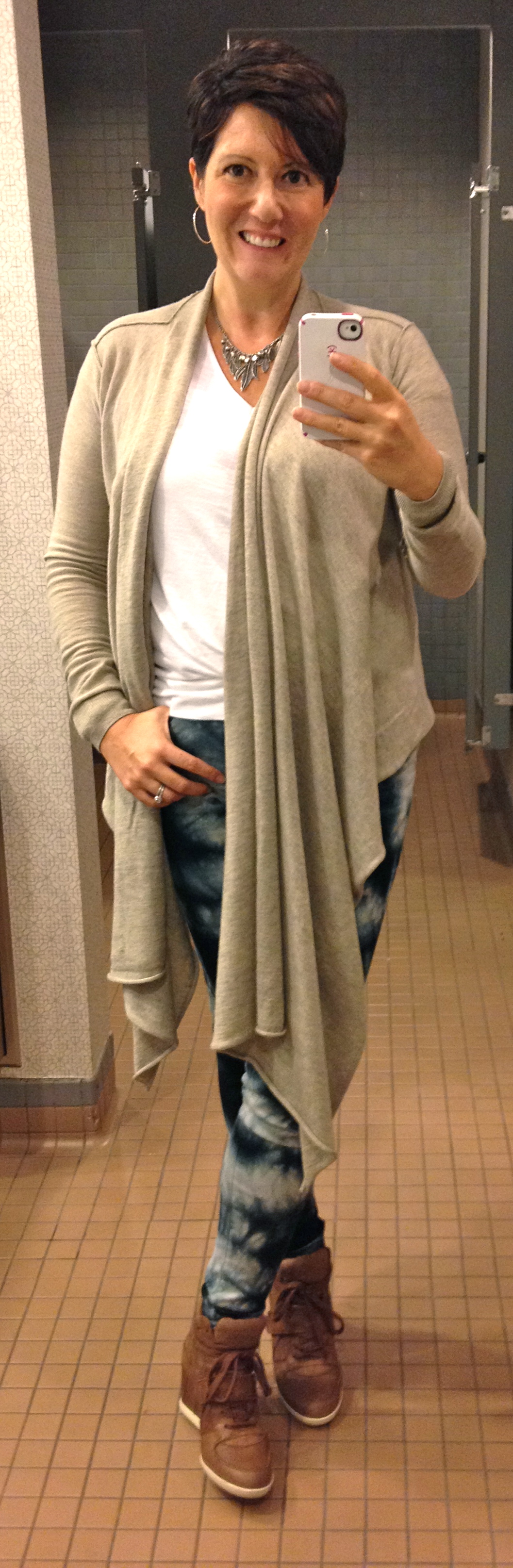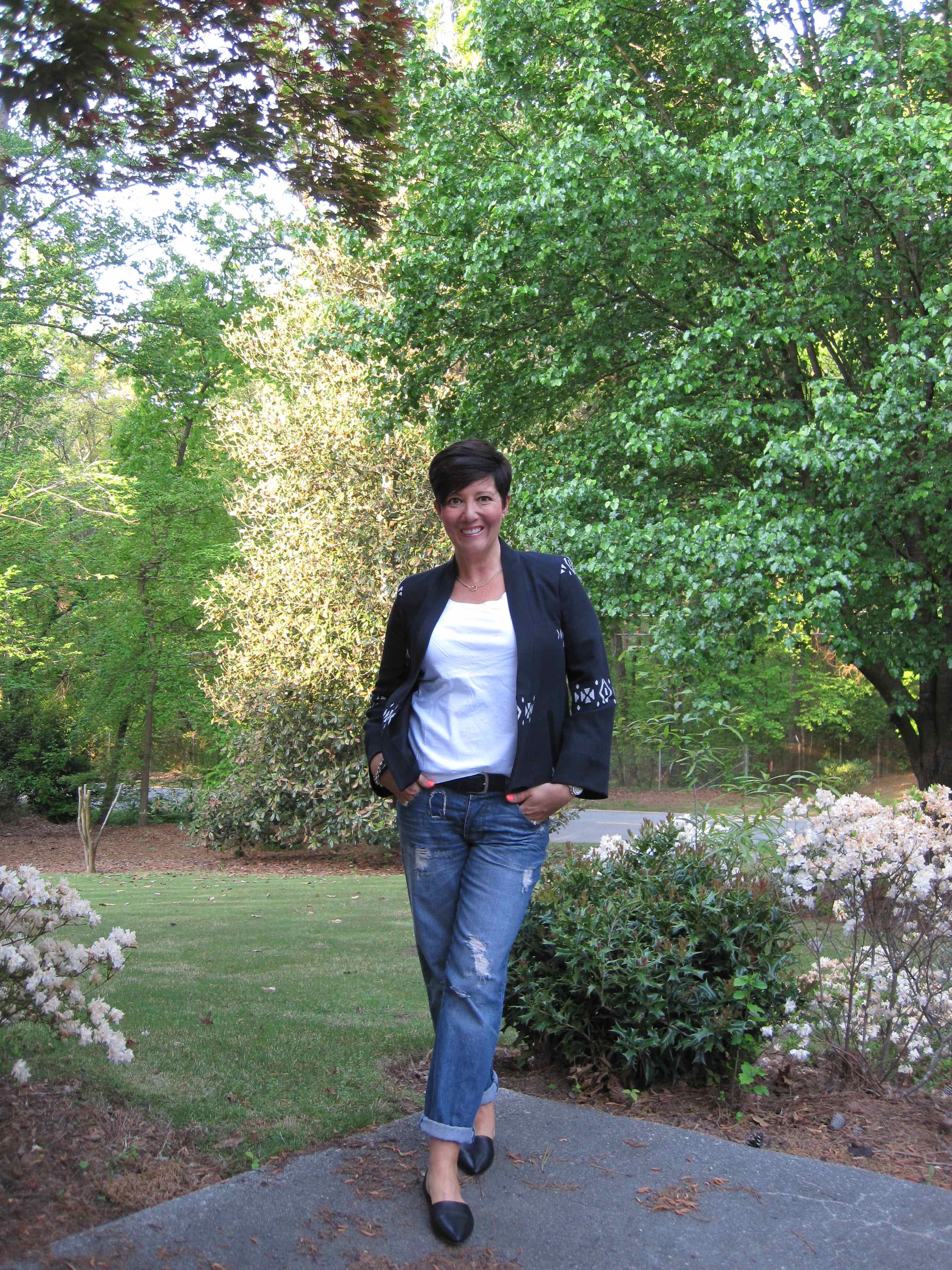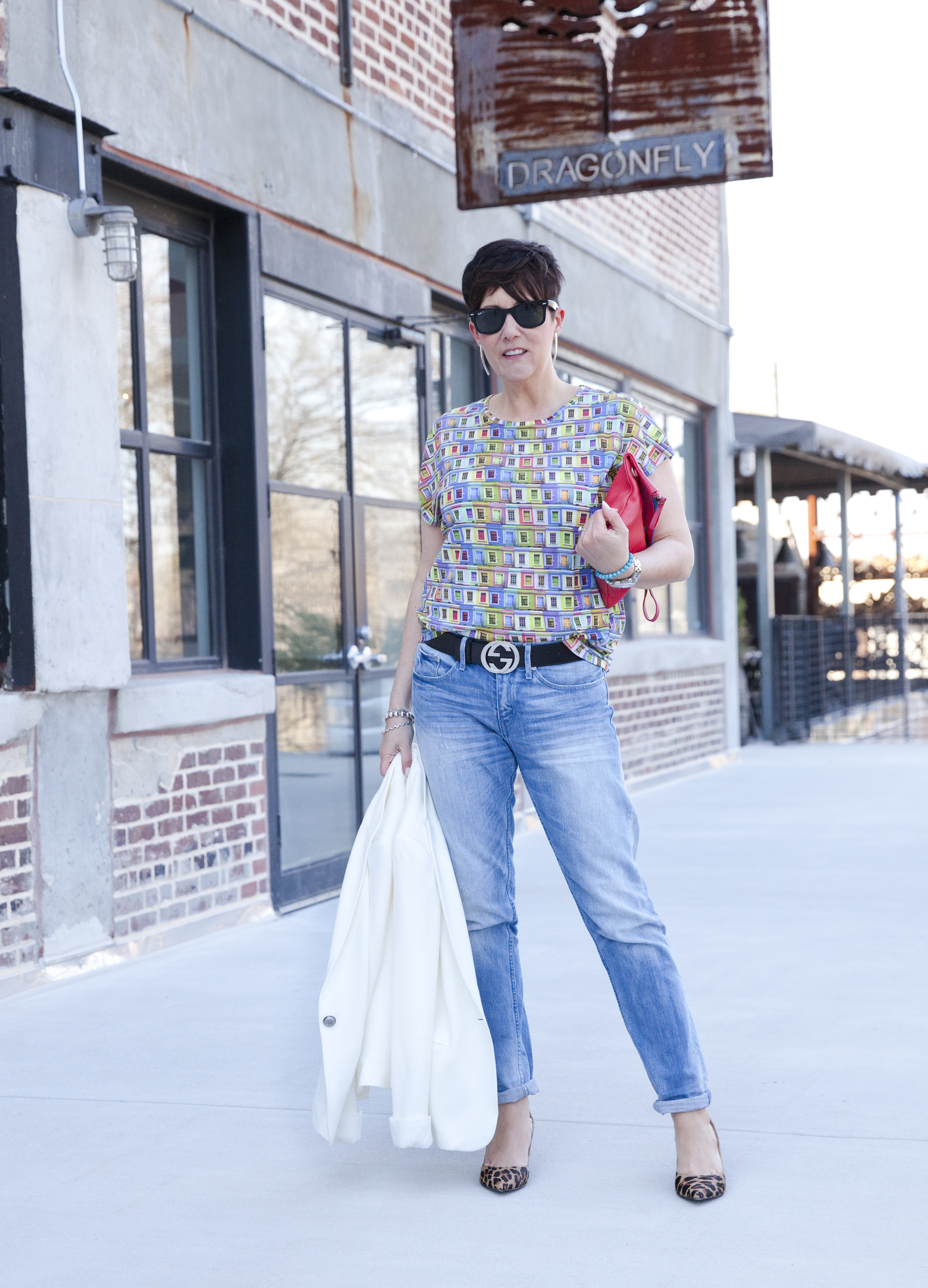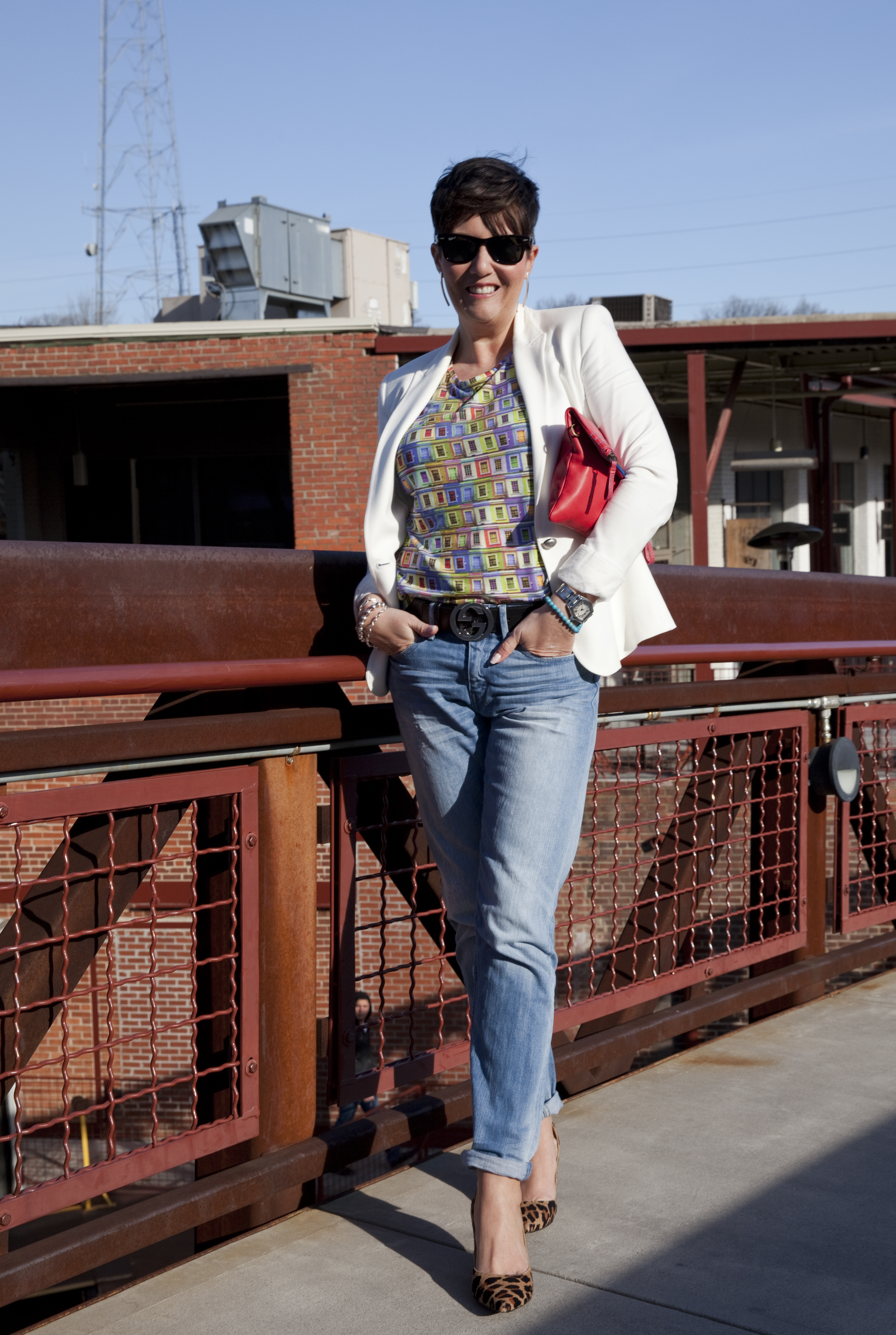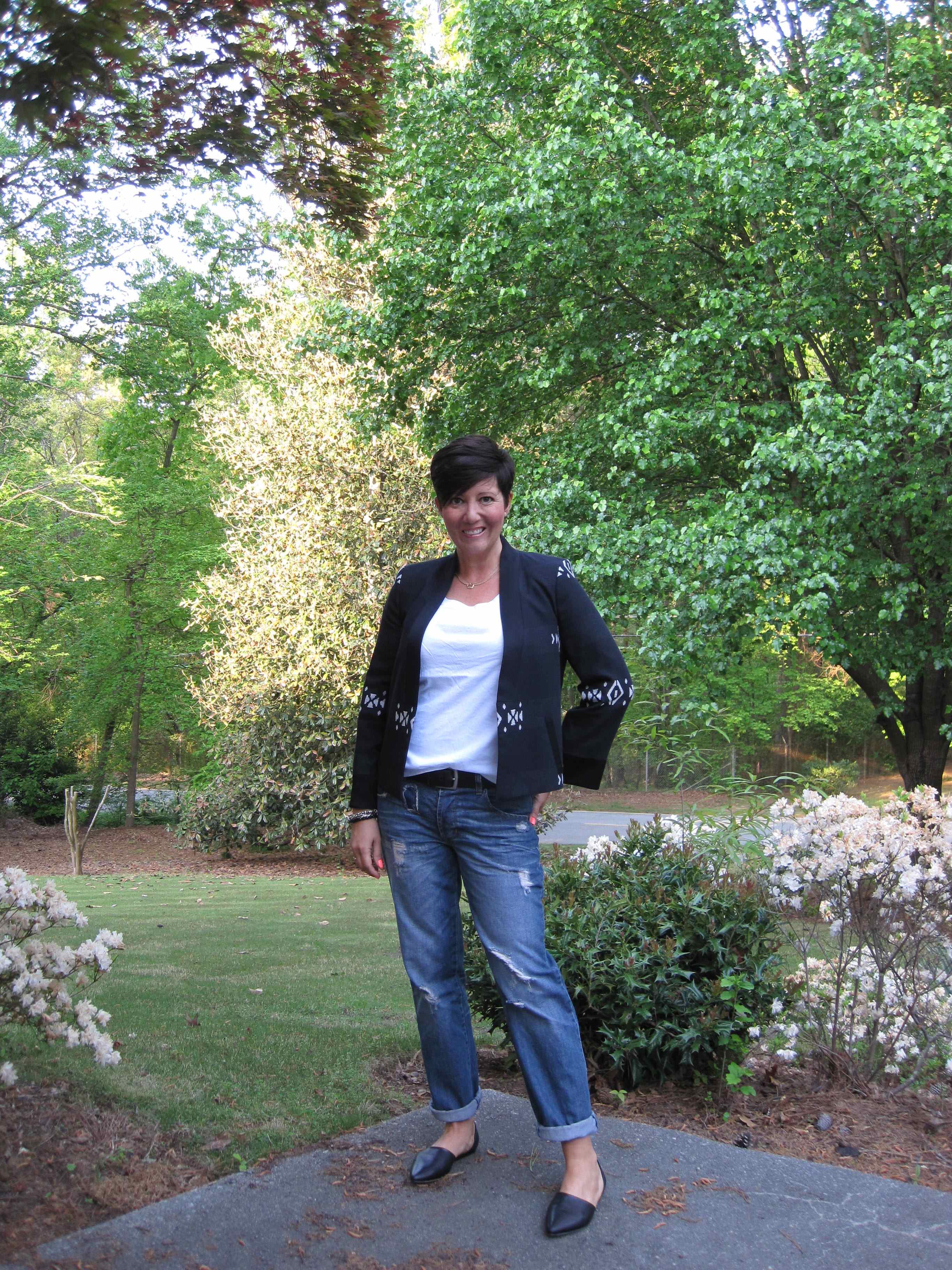 This is a case of poor preparation. I was planning to wear skinny jeans and then remembered I was having a pedicure later so I needed to wear a skirt, shorts or jeans I can roll up. I went with the jeans – but tried to substitute my distressed white skinnies from H&M for shiny white 501s and it really hasn’t worked – the proportions are all wrong. Even after a jacket change I’m still not happy. But after faffing around with photos etc…I didn’t have time to start again. So here I am. When it warms up later I’ll be taking my jacket off, and adding flip flops after the pedicure – a much better ensemble I think – and at least my feet will be looking good. I’m trying to distress these 501s slowly with a razor – I keep shaving threads off a couple of patches, hoping that with some washing they will split, but it’s not happening fast enough so I may just have to resort to the sandpaper trick.