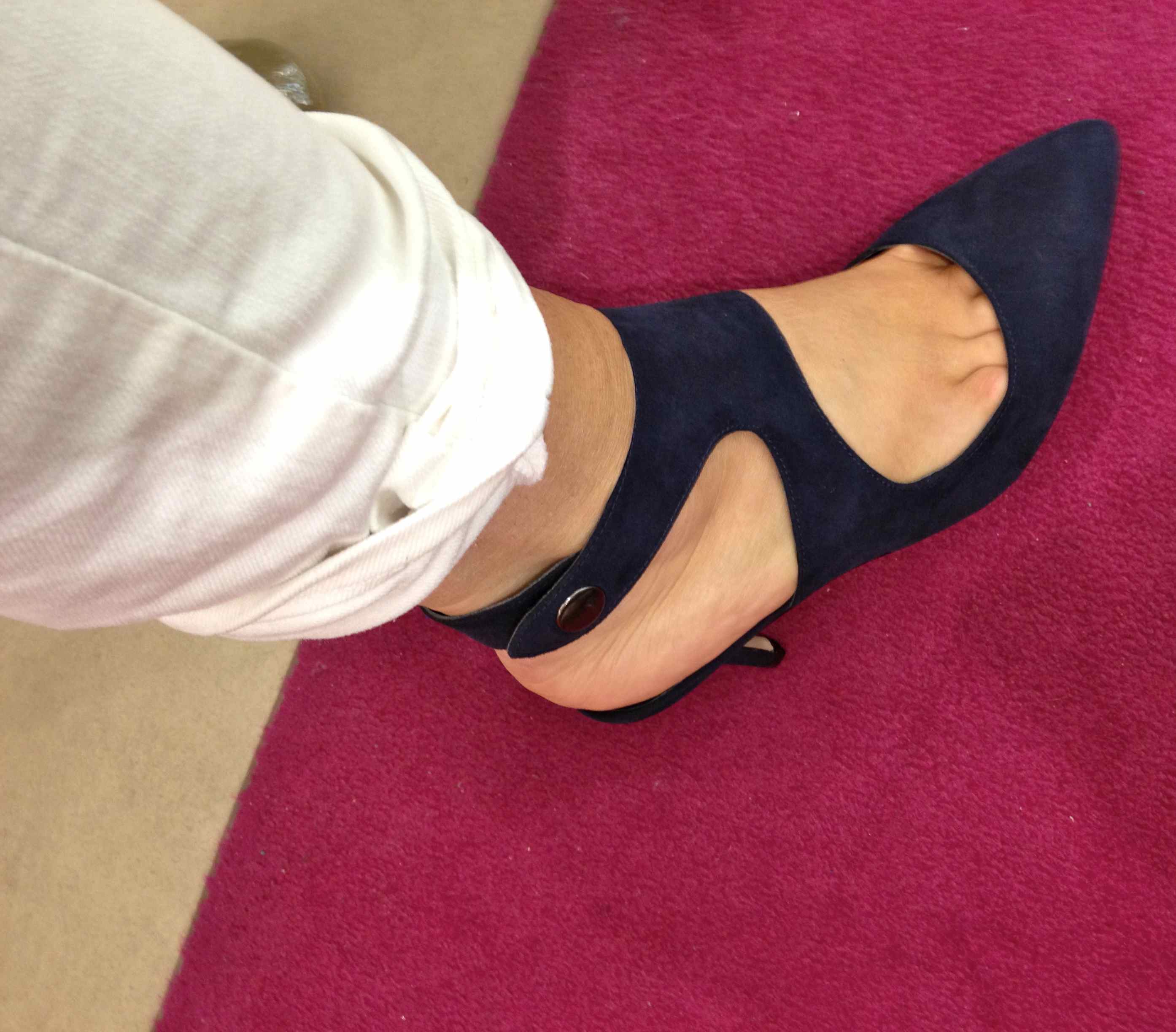 Finally the shoes. I didn’t get them – I wanted to – but the toe problem reared it’s ugly head again. I loved these and realized that I don’t have any navy heels at all so I could completely have justified them – but the little toe just wouldn’t behave. They came in grey too. I’m afraid I can’t see them online but I think they were about 28 GBP.