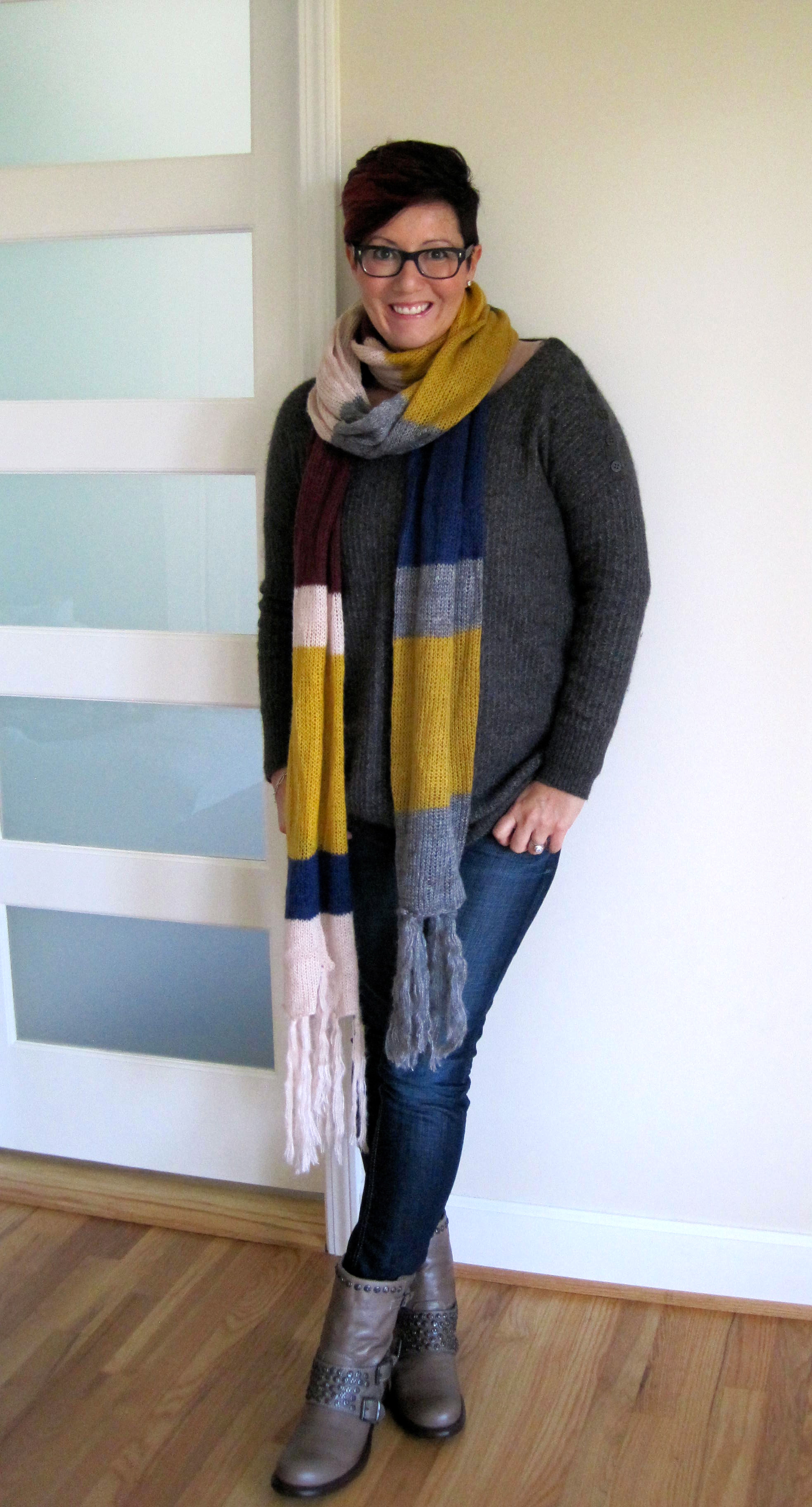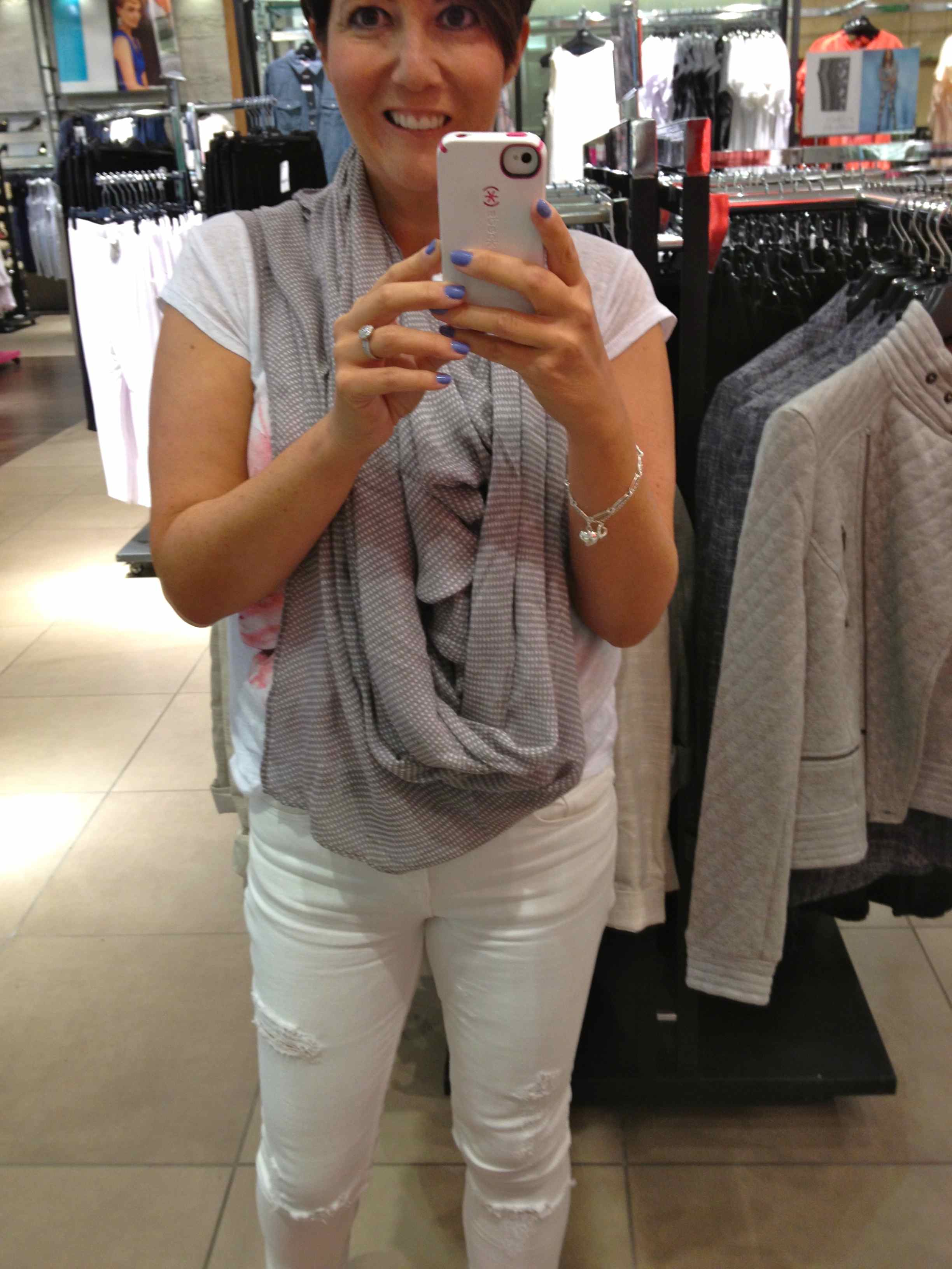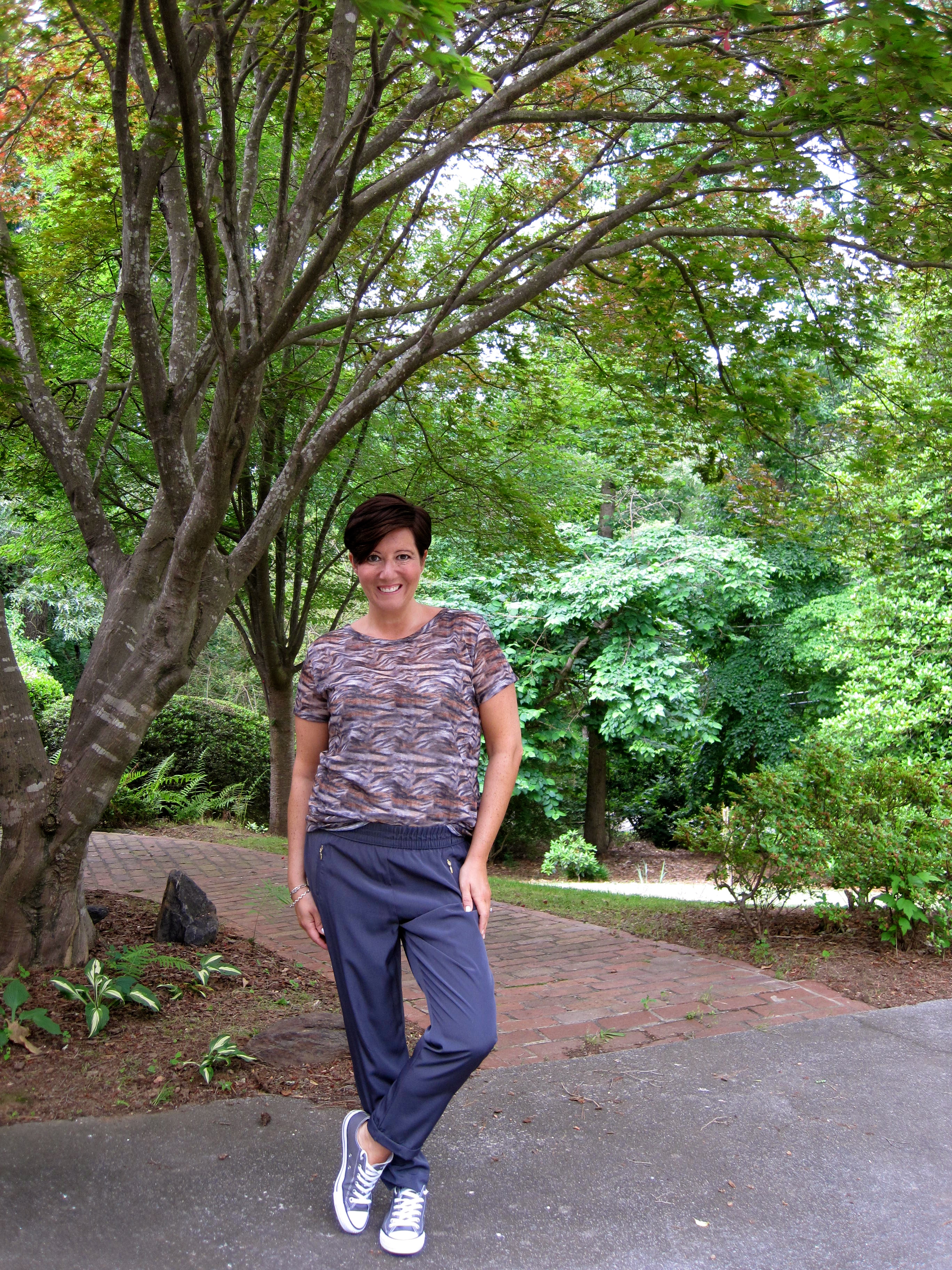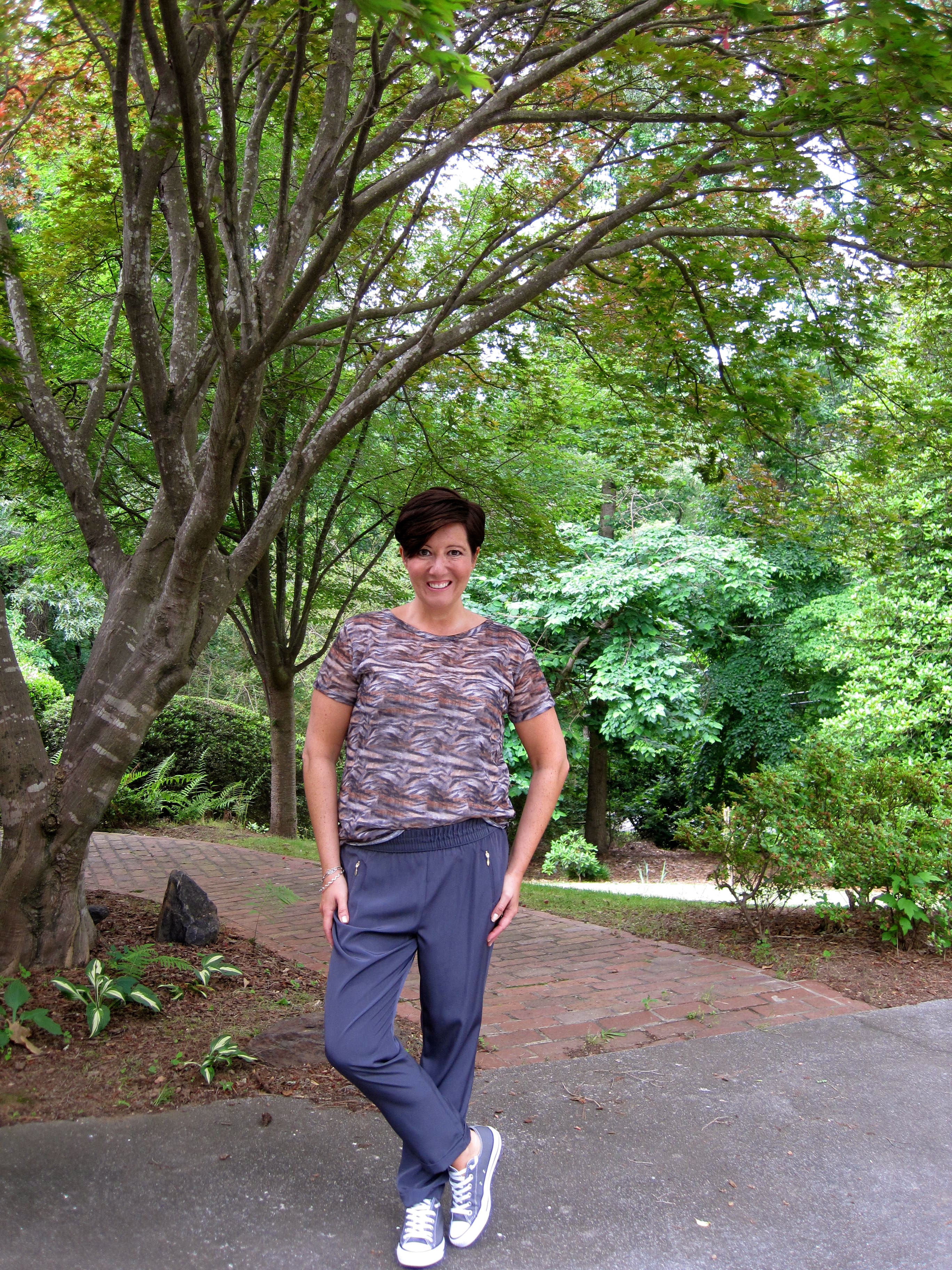 I’m not normally a blouse person at all. But I was immediately drawn to this. The leopard print obviously caught my eye, but the colors are also lovely – greys, white and blush tones. The shape is great too and very forgiving for the muffin top.