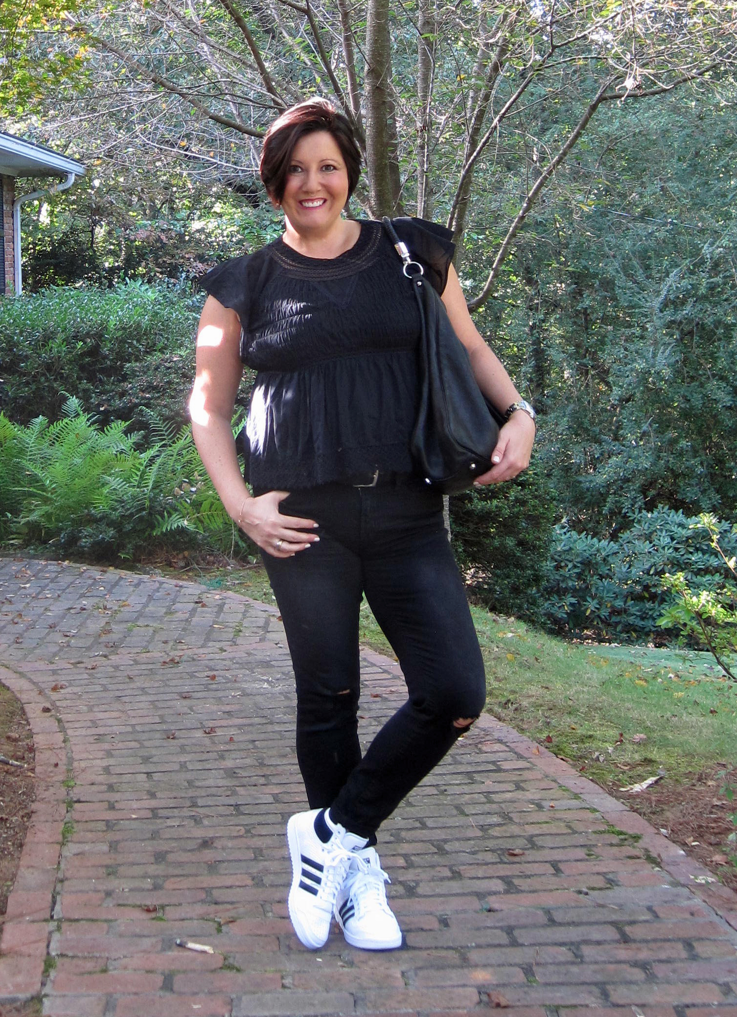 I made lots of sartorial errors last year but one major improvement I made to my closet was to add some navy and blue pieces. I love neutrals but I was getting tired of grey and black. Some navy pieces added a little extra something to my closet, and it is another style pointer that is endorsed by my new handbook “How to be Parisian…”. So why not add another pair of sneakers that also happen to be navy…and classics…? Introducing the navy Stan Smith from Adidas.