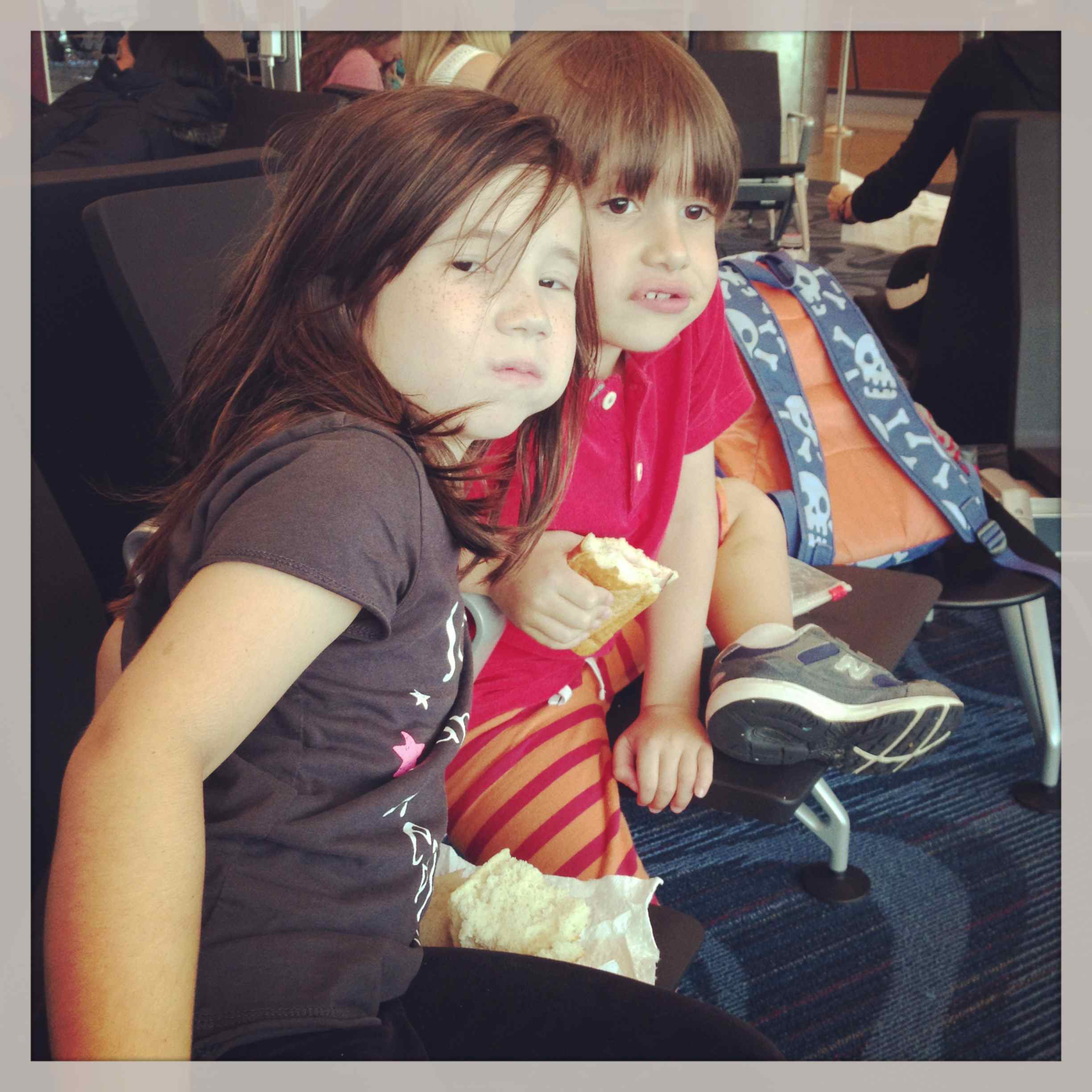 We made it!  I have to admit I was exhausted before I even got on the plane.  Hugh and Poppy were so excited that the first thing they asked at 7am was ‘are we going yet’.  Only another 12 hours of waiting, and answering that question then!  Finally we were on our way, bags packed with what I know to be way too many clothes – I even managed to sneak some extra shoes in their bags;)  For the first time we actually departed from the new Atlanta International terminal.  In the past we have checked in there and then had to get the airport train all the way back to the old terminals which just seemed like a complete waste of time.  This time we got to explore the sparkly new terminal, with a food court to rival those of the best airports in the World.  I could quite happily have spent an hour or so in Ecco drinking wine and eating flatbread.  Instead we had homemade ham and cheese butties which I think Poppy and Hugh appreciated far more.
