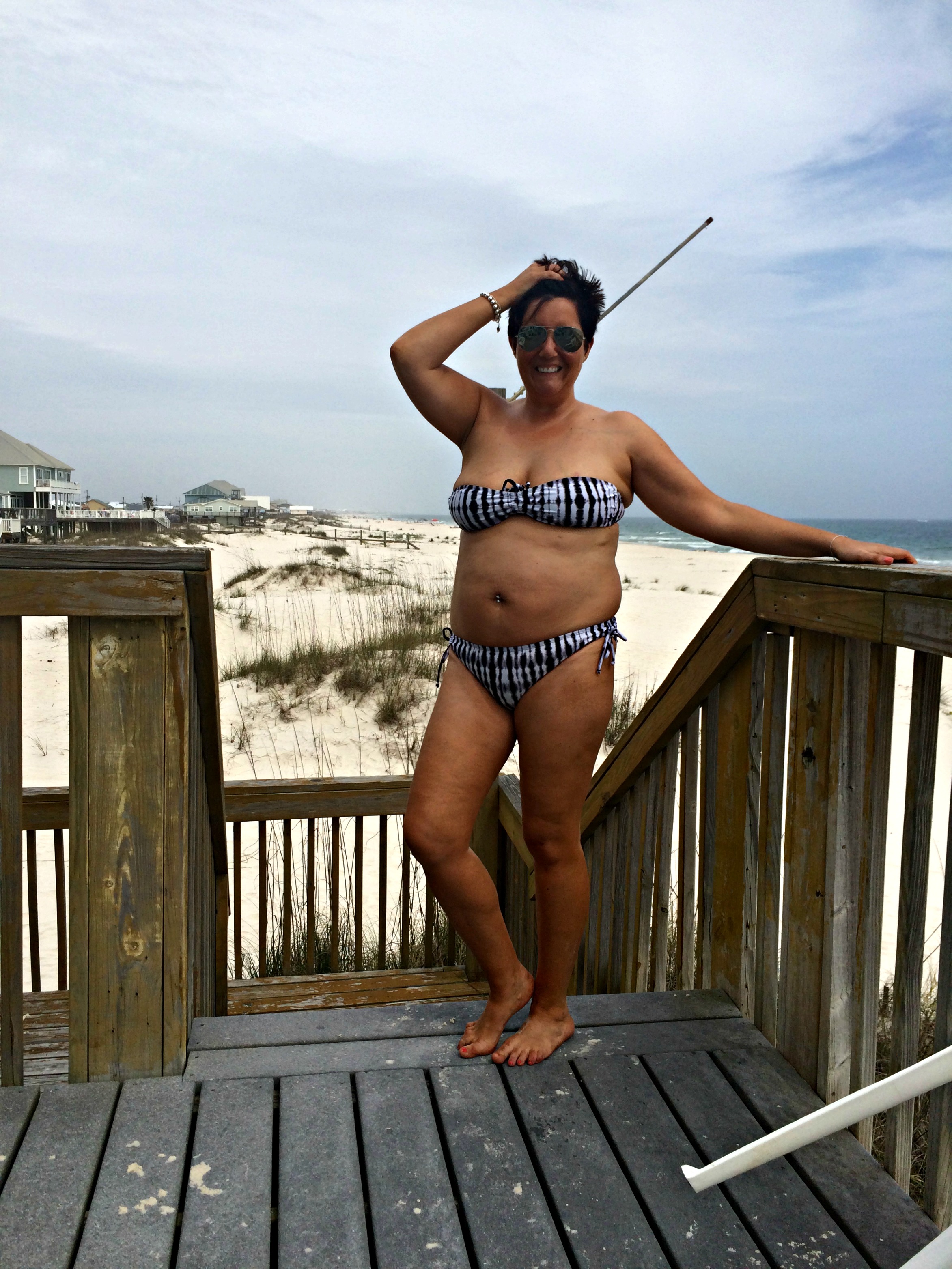 I will say that though I battle with my expanding waistline and I adapt to new bumps and scars, as I approach my 44th birthday this summer, I have never been happier or more content with my body in a bikini. Embrace it girls – if you do everyone else will! xx