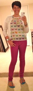 T-shirt – Gap // Scarf – Marks and Spencer’s (from my last visit – has a bike printed on it – I love it! // Jeans – Gap // Ballet pumps – navy Tory Burch Eddie flats
