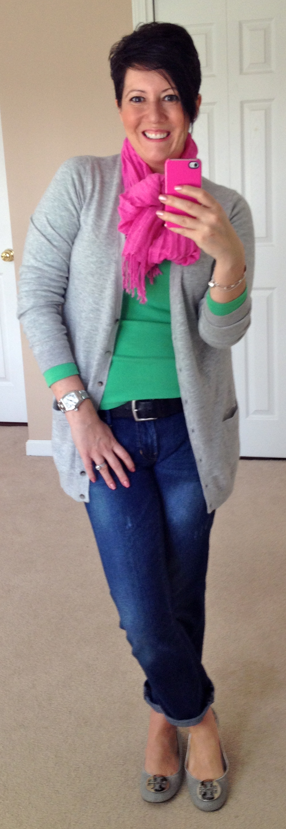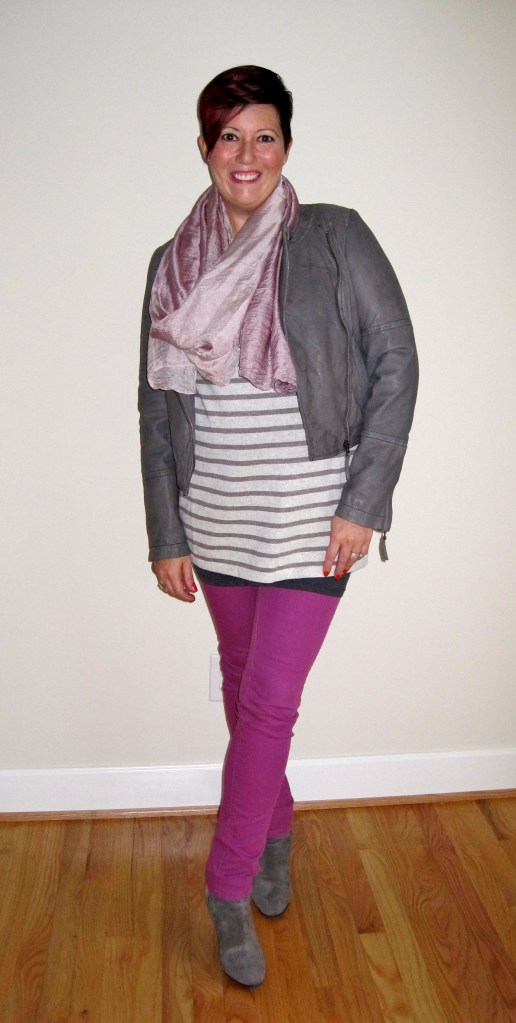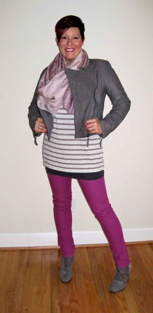 This is a similar shape only colorblock and I wore this in my last post – the colorblock zip sweater. Again take an extra 40% off the sale price.